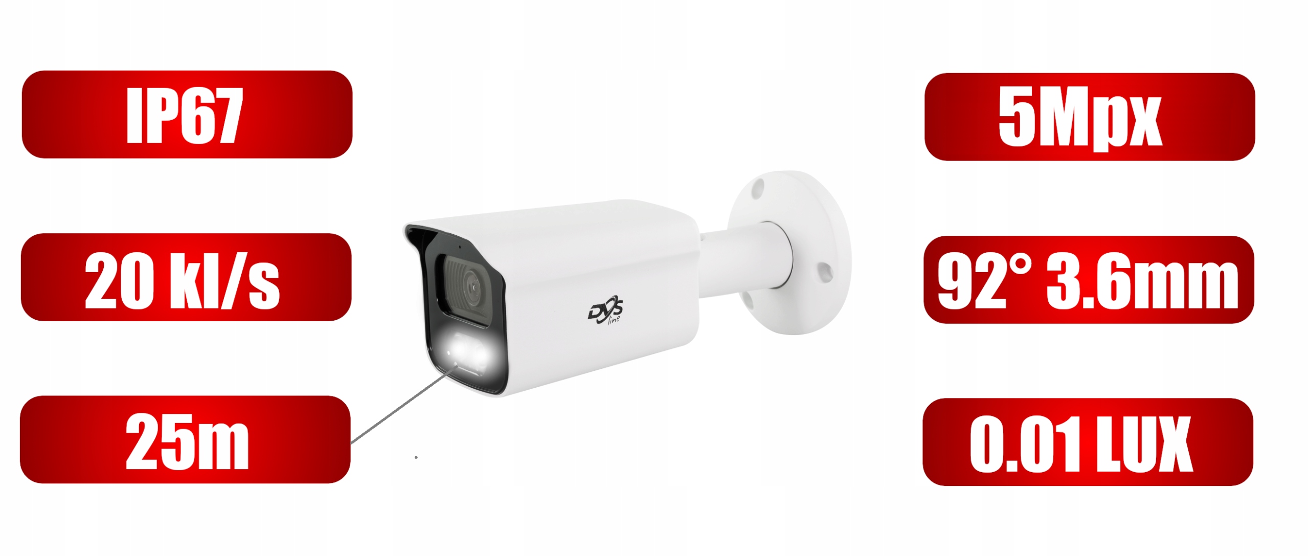 Используется датчик изображения с очень высокой чувствительностью (0,01 люкс) позволяет получать полноцветное изображение 24 часа в сутки. Камеры оснащены сумеречным датчиком. Автоматически активируемые мощные светодиоды освещают контролируемую территорию на расстоянии до 25 м до рассвета. Использование материалов высочайшего качества позволило камере достичь класса герметичности IP67. Это означает, что камеры могут выдерживать даже самые суровые погодные условия и условия освещения (например, сильный дождь).