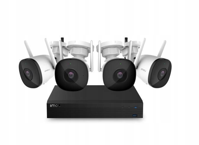 - Аксессуары в комплекте: 4 камеры, 1 сетевой видеорегистратор Wi-Fi (встроенный жесткий диск емкостью 1 ТБ), 1 краткое руководство.
