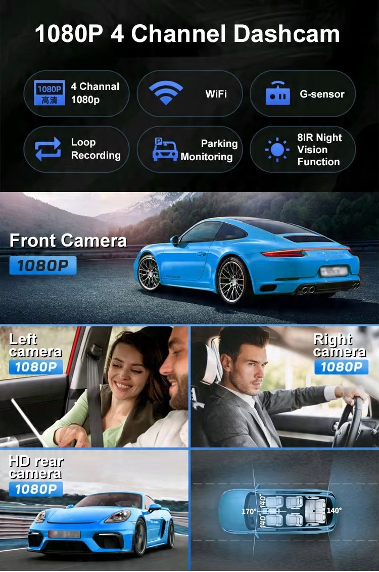 4-канальный 360 ° Full HD 1080p WiFi GPS GPS/Android Car Camera