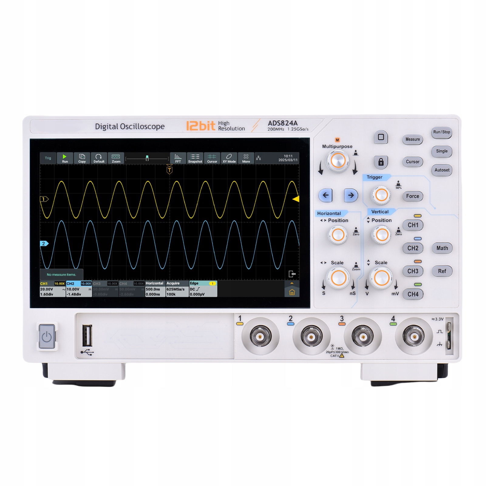 4-канальный цифровой осциллограф, 200 МГц, 12 бит, высокий ZO