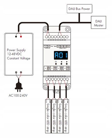 4-канальный Dimmer Dali 4x5a 12-48VDC DA4-D