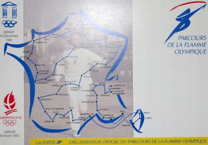Описание: набор из 3 открыток и 1 конверта в первый день циркуляции (FDC) с марками и марками, посвященными ретрансляции олимпийского Red Rick Rebellion Albertville 1992 в городах Париж, Лион, Сен-Элиан и Чальн. Убогий.
