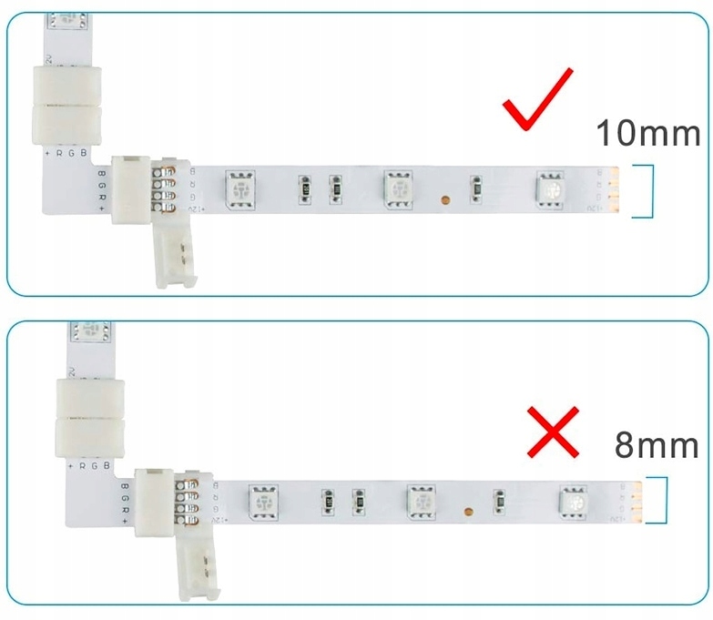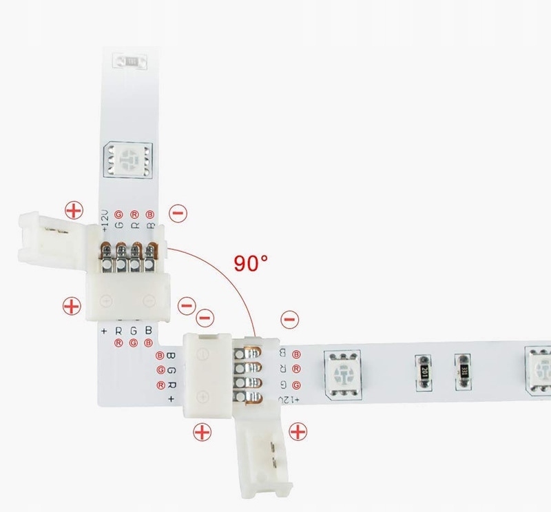 Если хотите, идеальное соединение b> Соедините 2 части светодиодной ленты вместе (например, чтобы получить соответствующий радиус изгиба, удлините ленту или используйте остатки ленты), используйте наши разъемы для светодиодных лент.