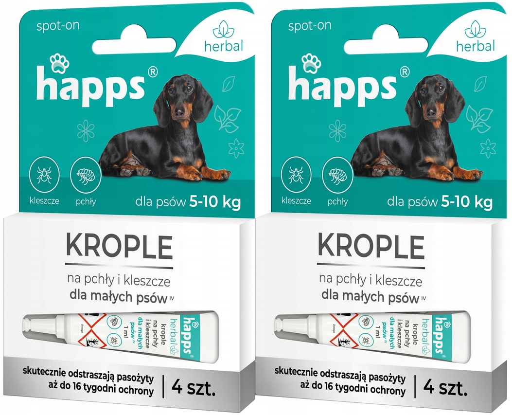 В упаковке есть 4 отдельные трубки с каплями. Беспокойство о измерении дозы. Агент Parasite Happs может использоваться как у взрослых животных, так и у щенков старше 12 недель.