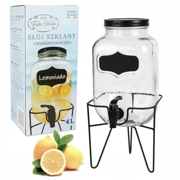 ⭐ jar 4 l с краном на подставке с крышкой для лимонада напитка вода festa iTalia является незаменимым элементом в летние дни, идеально подходящие для подачи освежающих напитков. Благодаря тесной крышке продукт защищен от пыли и насекомых, что обеспечивает более длинную свежесть напитков. Функциональный tap облегчает заливку, и сплошная ручка обеспечивает стабильность при переносе.