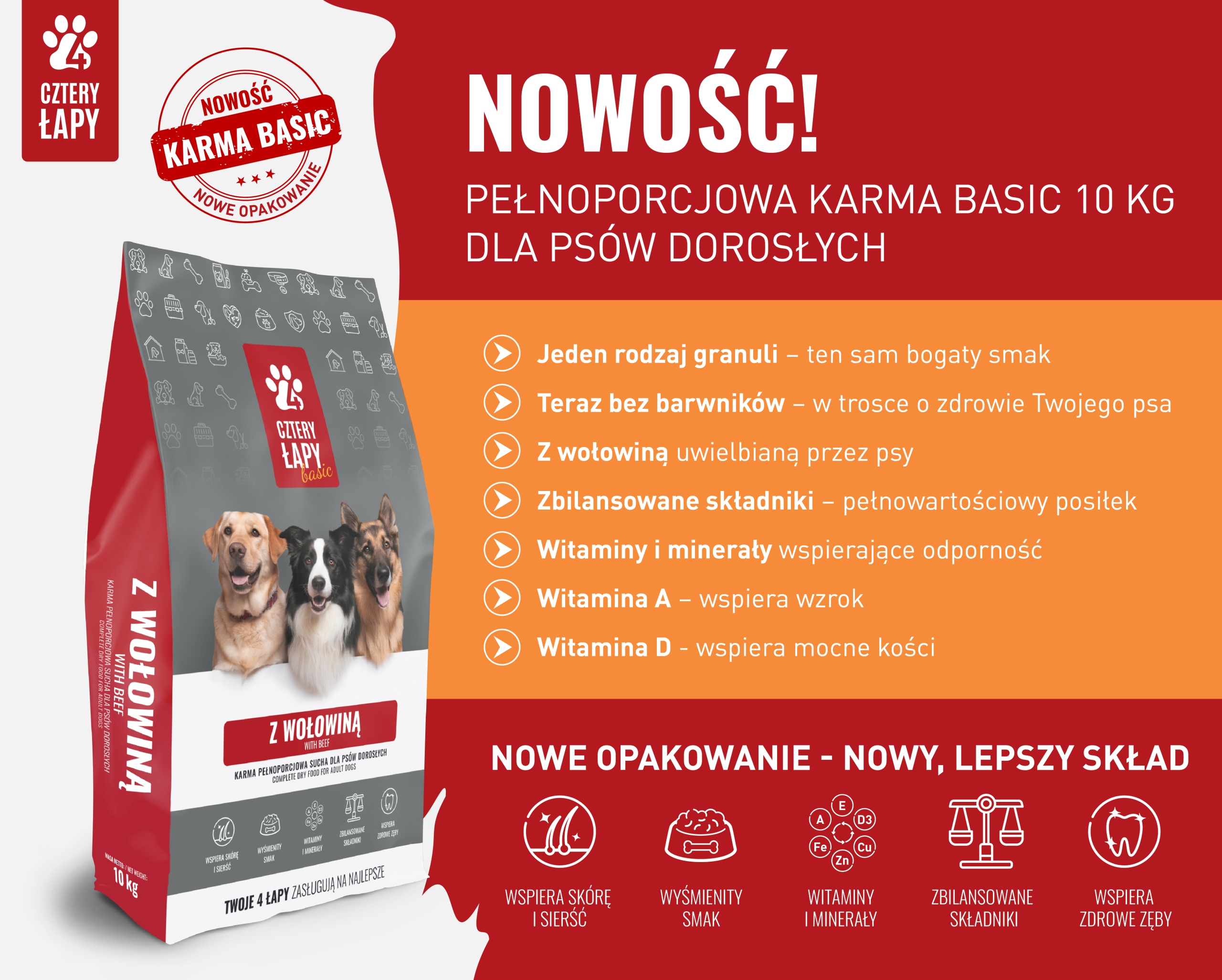 4 лапы BASIC BEEF 10 КГ Корм для собак КАЧЕСТВО Четыре лапы говядина