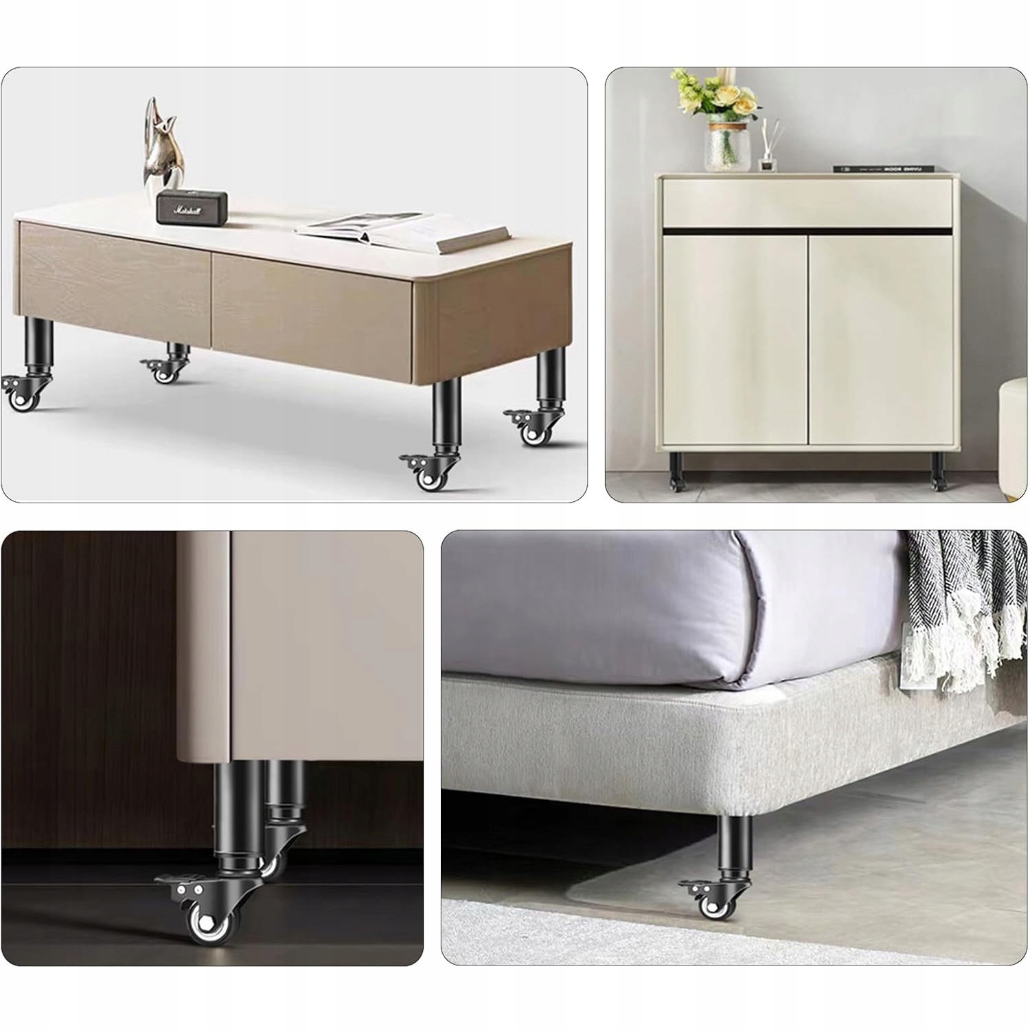 ➡ 360 ° Круги, Новые, удобные жизненные впечатления - нога стола оснащена колесами, повернутыми на 360 градусов с функцией торможения, которые облегчают движение мебели, и в то же время можно заблокировать в их положении, чтобы обеспечить стабильность и не стереть, что приносит большую стабильность и приносит выгоды в повседневной жизни.
