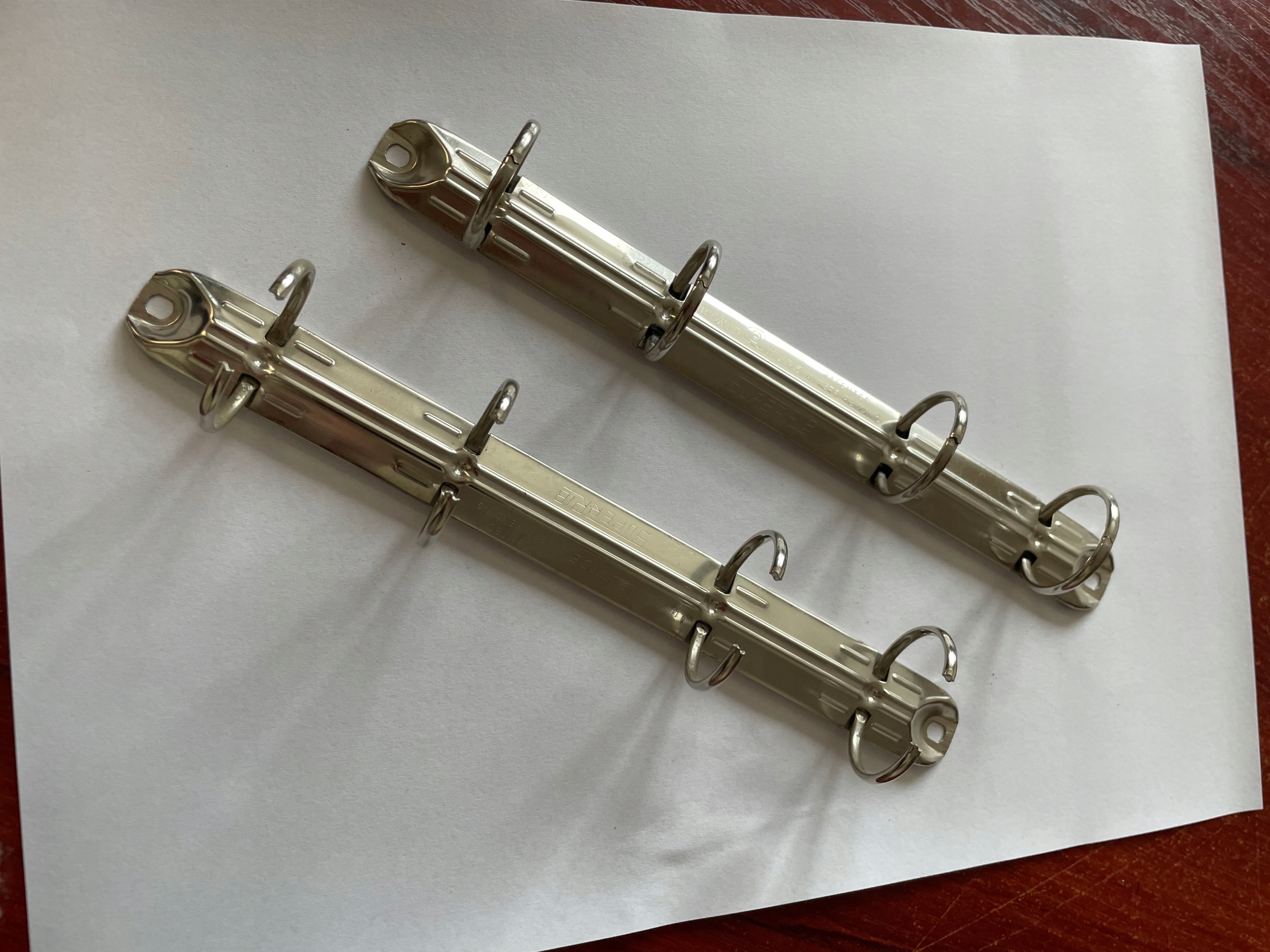Механизм металлический для папки-регистратора на 4 кольца, длина 210 мм, ширина 20 мм, диаметр кольца 25 мм, ширина между замками; 40х60х40мм, крепится 1 комплектом заклепок - 1+2 заклепки.