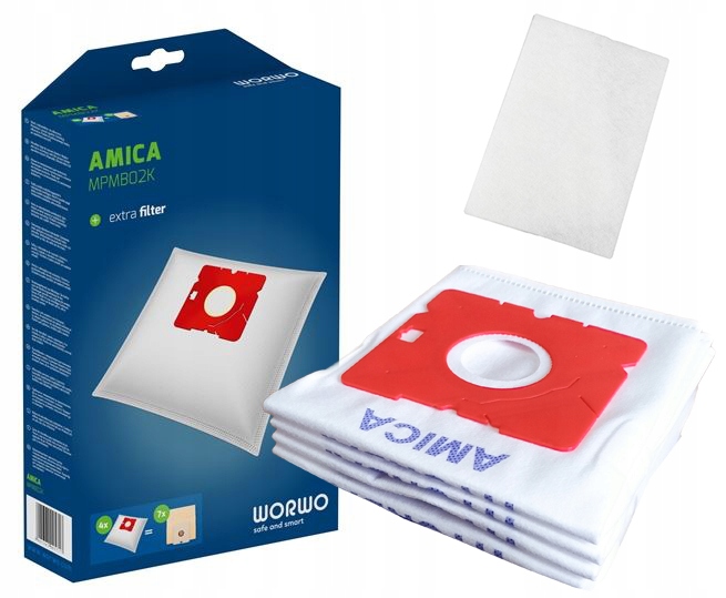 4 синтетических мешка + моторный фильтр, предназначенные для домашних пылесосов AMICA