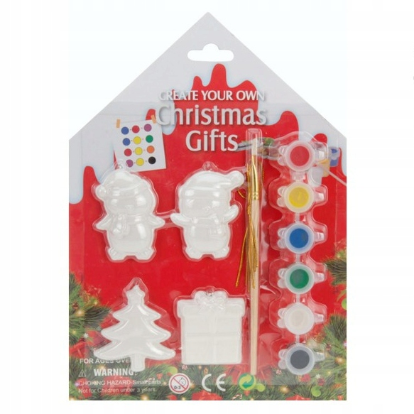 В набор входят четыре керамические основы, подвески, точная синтетическая кисть для рисования и контейнеры с красками шести основных цветов.