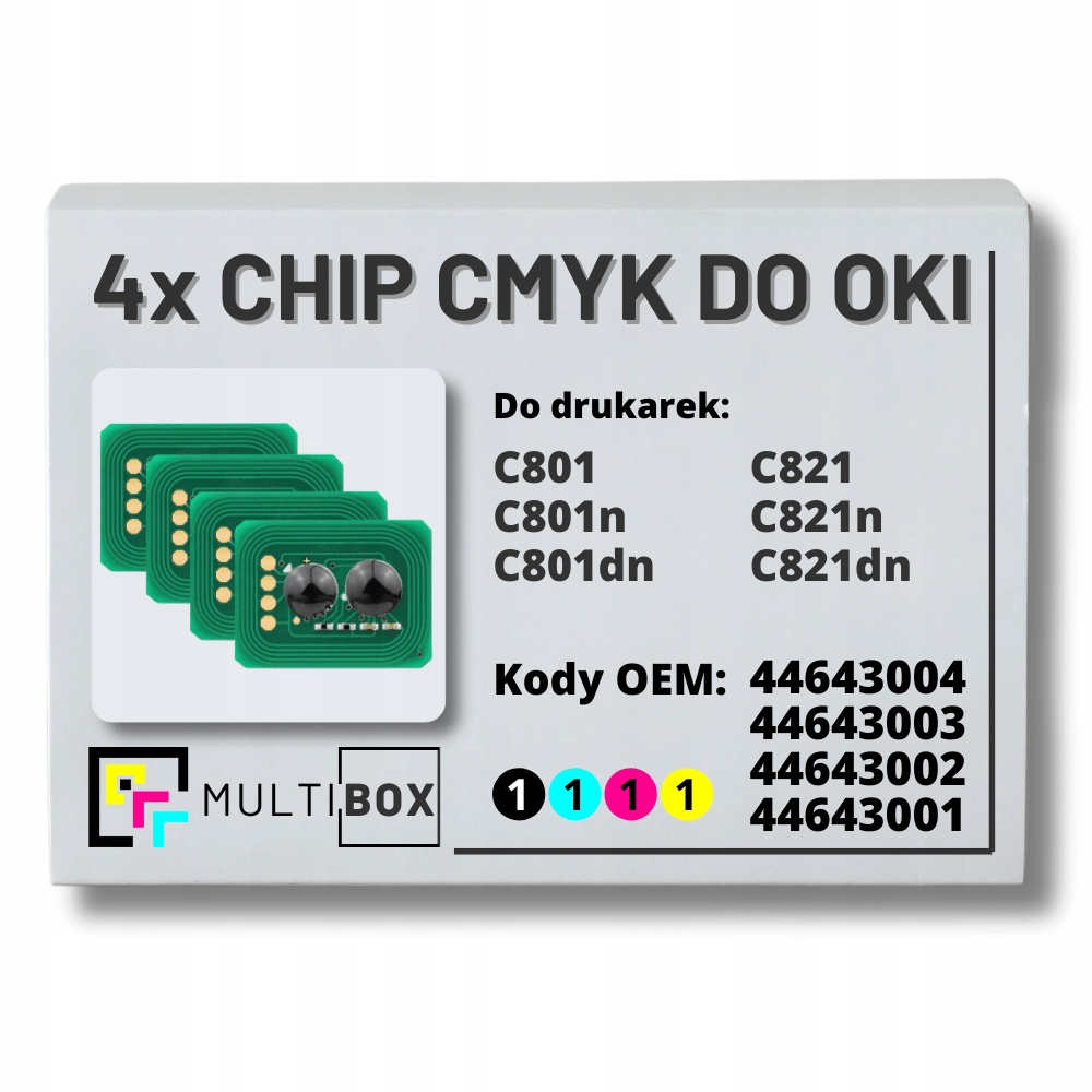 - Название продукта: 4-Pak CMYK Чип для принтеров Oki C801 C821 Multibox