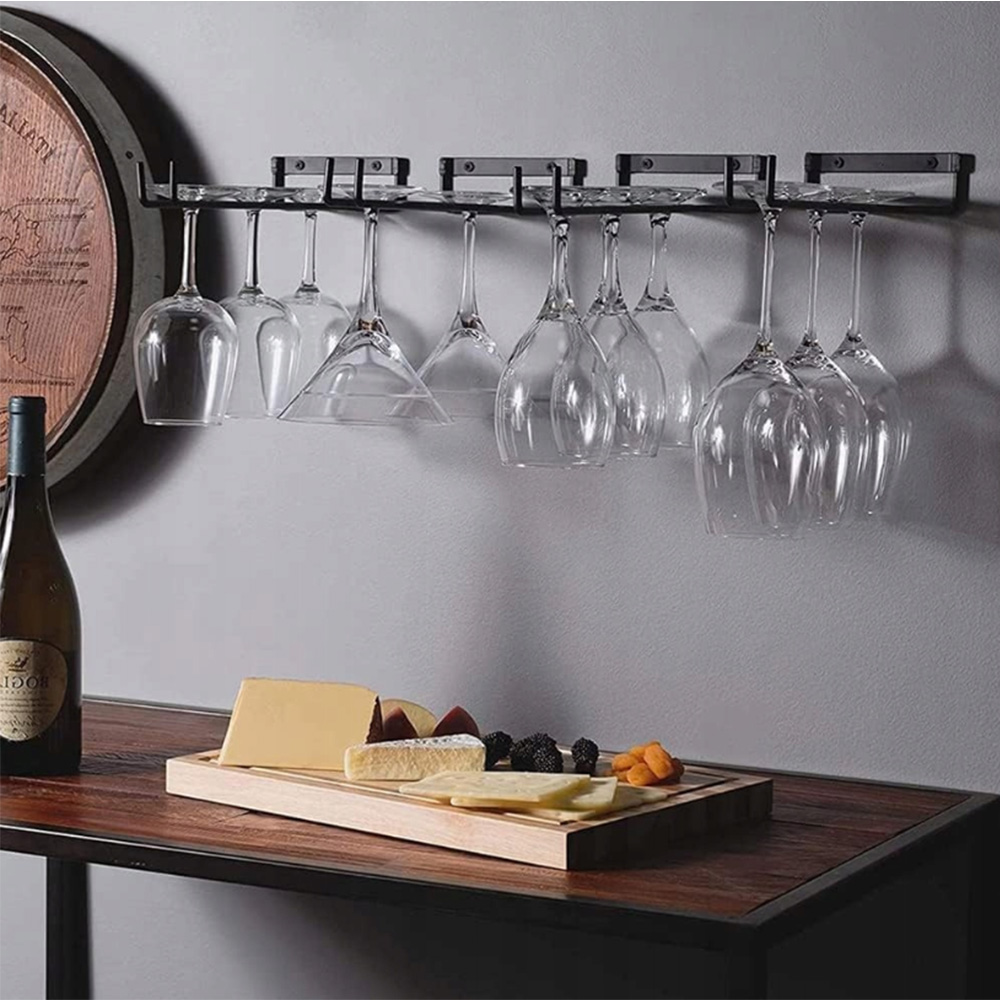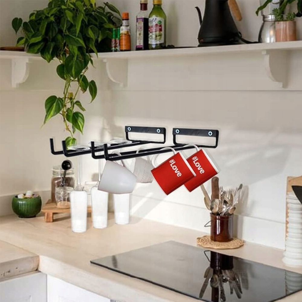 ► 【Держите чистую】 подставка для висящего вина может быть легко установлена под шкафами, где бы вы ни хотели, чтобы наборы стаканов были порядок и практические, и защищает очки от осколков или трещин, сохраняя их чистую пыль.