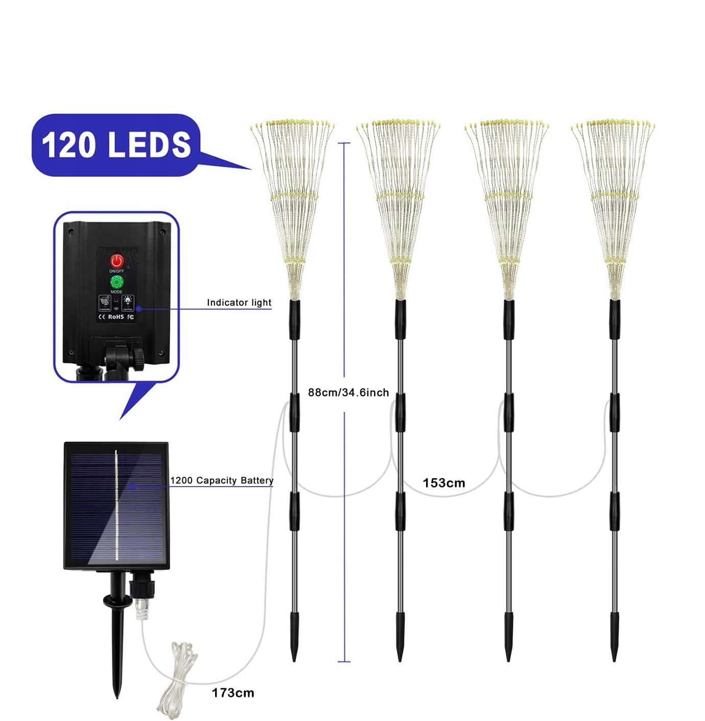 4 шт. Солнечные садовые лампы, фейерверки, 8 солнечных мод