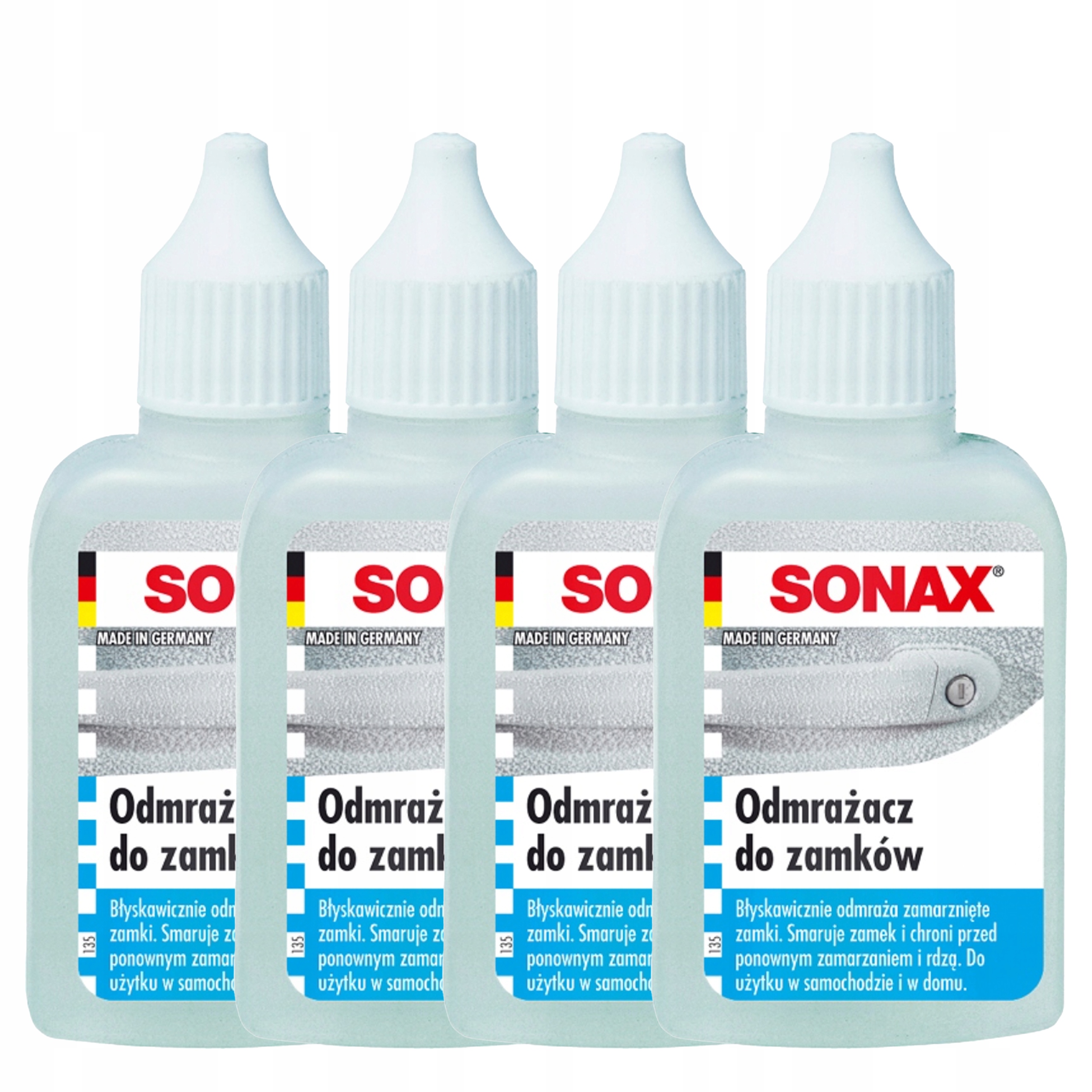 набор из четырех спреев Sonax для молнии с емкостью 50 мл каждый. Подготовка эффективно удаляет мороз, лед и влагу из замков автомобилей, двери, туловища и т. Д., Обеспечивая плавную работу механизмов при низких температурах.