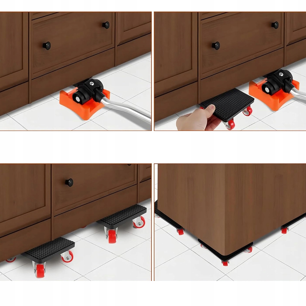 - Используйте удлинительный рычаг, чтобы поднять мебель → Поместите колеса на ножки/углы мебели → Вытяните рычаг, чтобы завершить сборку. Легко перемещайте мебель по любой поверхности, значительно упрощая процесс переезда.