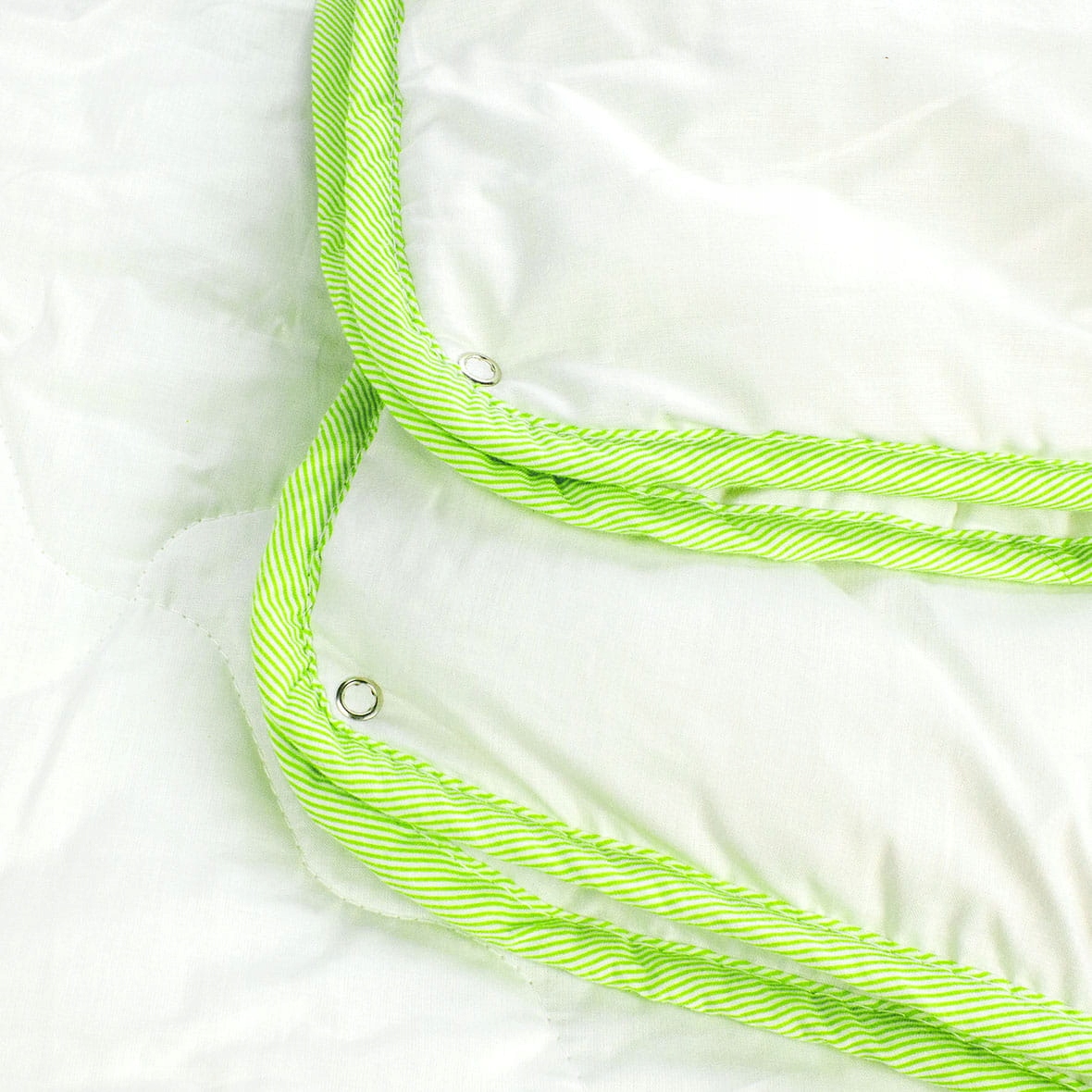 - наполнителем одеяла является бамбуковый нетканый материал, он отличается высокой теплоизоляцией, он равномерно согревает тело и прекрасно отводит влагу, пропуская воздух.