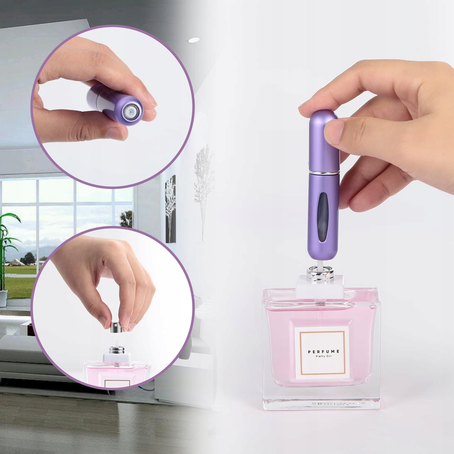 ⭐️Удобное заполнение: Внизу есть отверстие для наполнения. Направьте на трубку флакона духов, затем нажмите, чтобы заполнить.