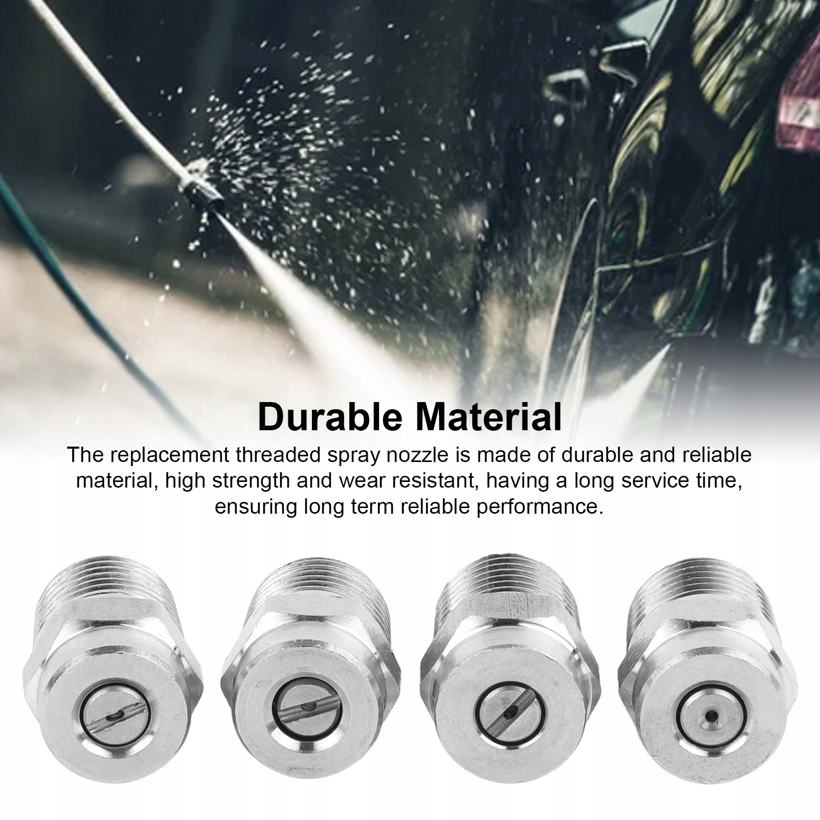 1. Сопло высокого давления: распылительное сопло с резьбой распыляет воду мощной струей под высоким давлением, легко удаляя стойкие загрязнения и приспособления, обеспечивая превосходные результаты очистки.