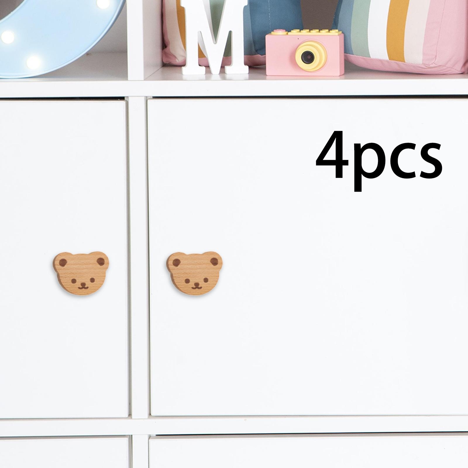 4 шт. Дерев'яні ручки для комода з гвинтами Меблеві ручки Шафа тягне ведмідь