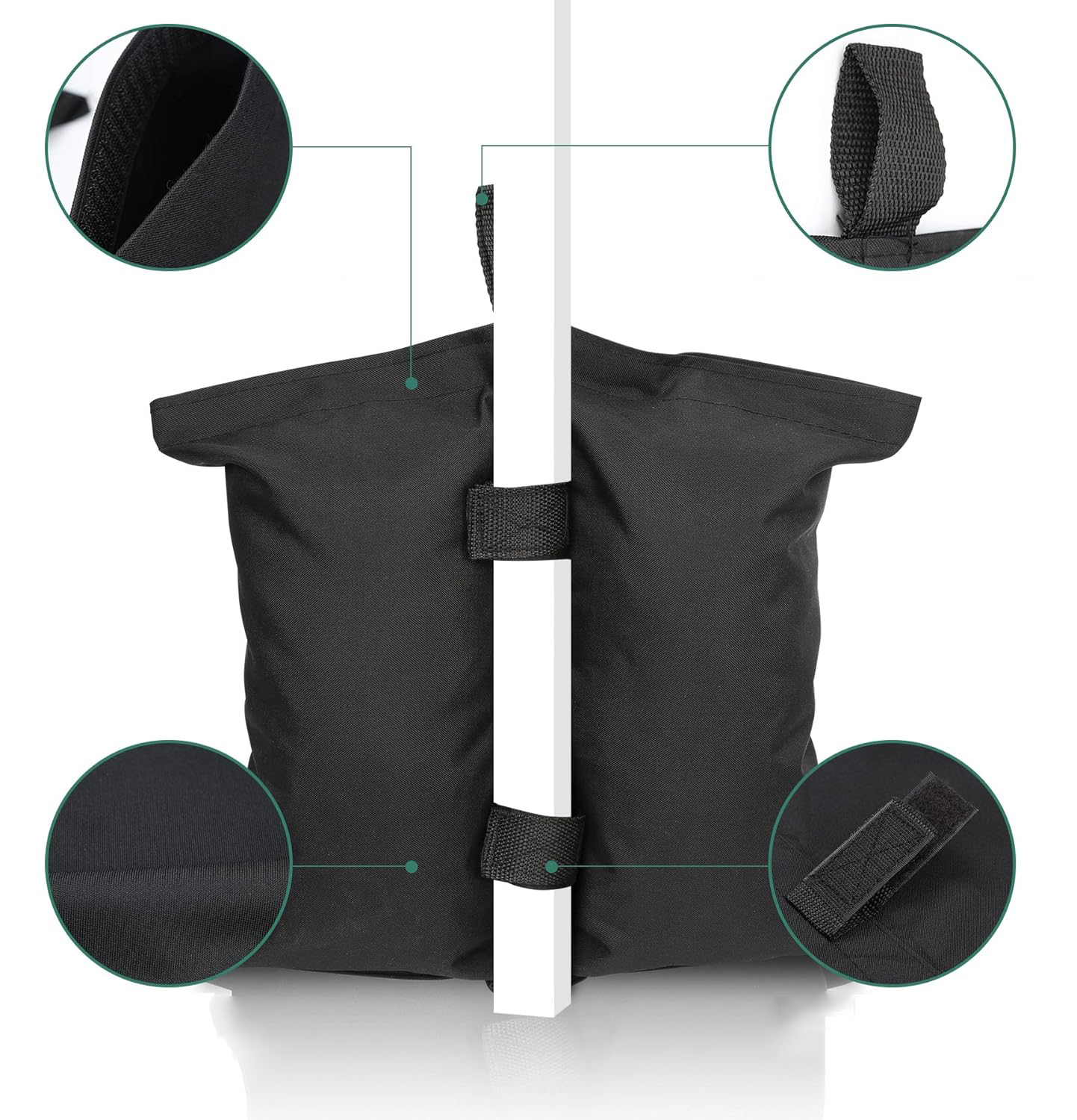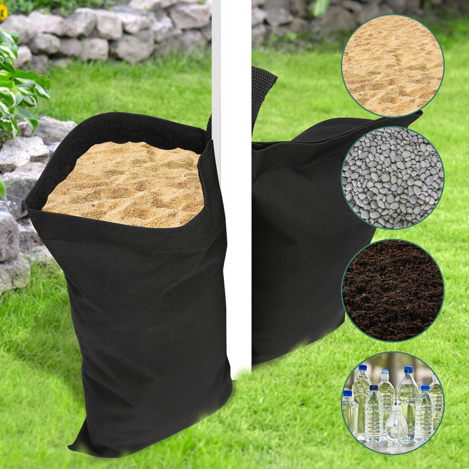 👍 👍 Высококачественные материалы】 Песчаные мешки изготовлены из прочного Оксфорда волокно, которое долговечно и устойчиво к разрыву и имеет дополнительное водонепроницаемое покрытие для использования в любых погодных условиях. С песком, гравием, камнями, бутылочной водой, почвой или другими доступными материалами и защитите его, если это необходимо. Песок может быть выложен сразу после использования, его легко чистить, сгибаться, занимает мало места и легко хранить. Ветрозащитные пакеты с песком, они оснащены креплениями, которые предотвращают шлифование во время использования и обеспечивают безопасное прикрепление мешков песка с песком к павильону. Более того, сумка можно быстро и легко надеть и удалить. /p>