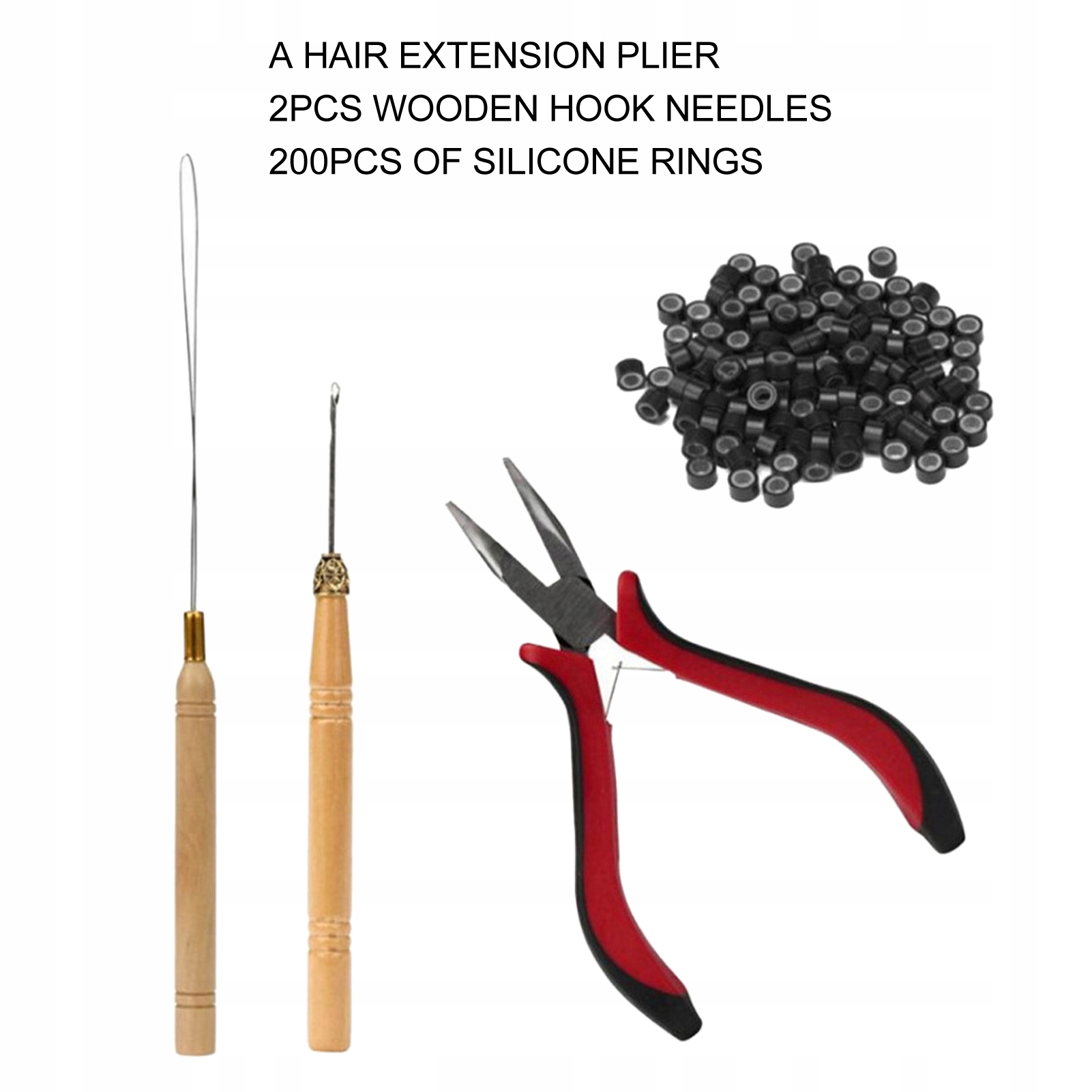 1. В комплект поставки входят: щипцы для наращивания волос, 2 деревянных иглы-крючка и 200 силиконовых колец, которые могут удовлетворить ваши потребности.