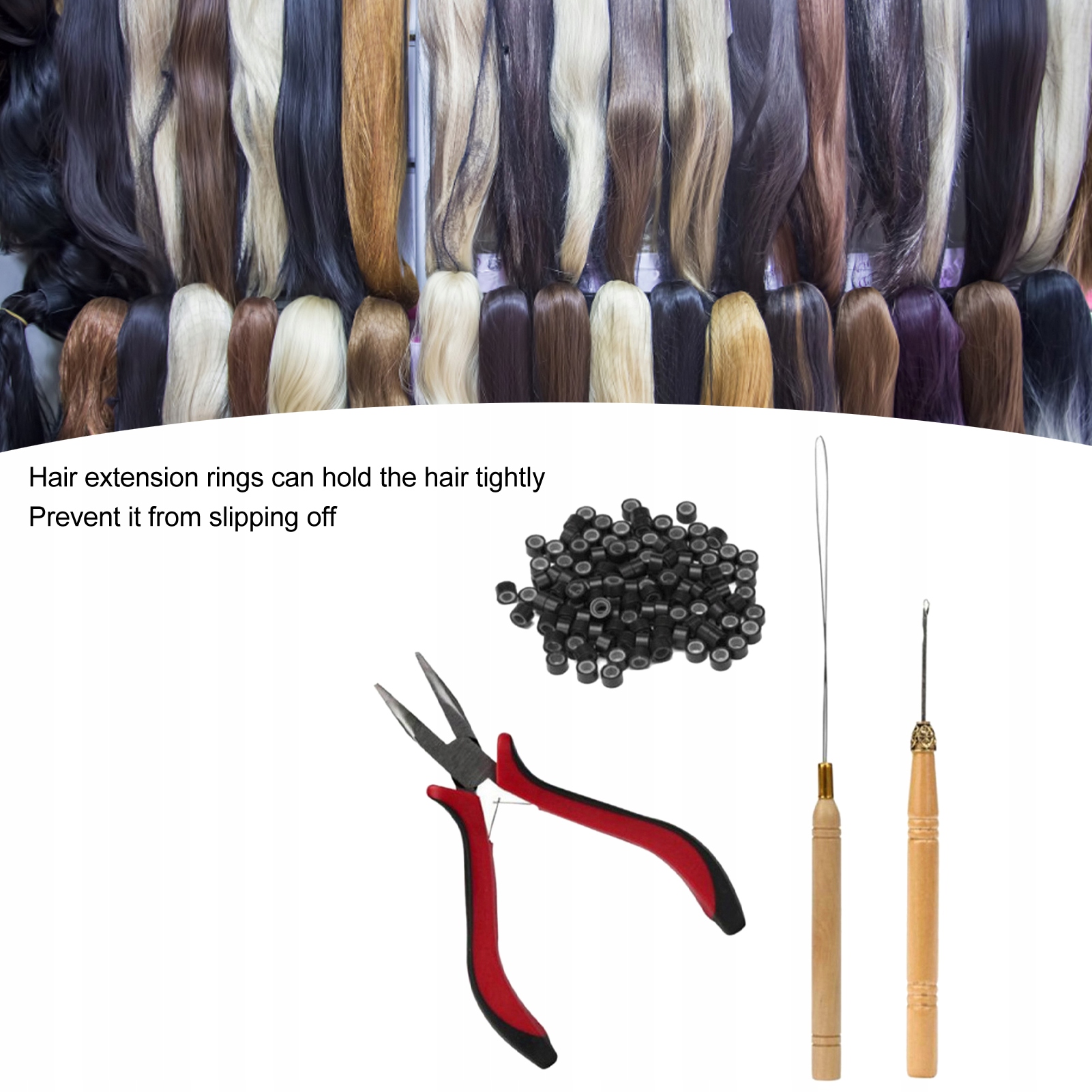 4 шт., щипцы для парика и изогнутых кончиков, деревянные крючки, иглы, силиконовые кольца, инструменты для наращивания волос, черные
