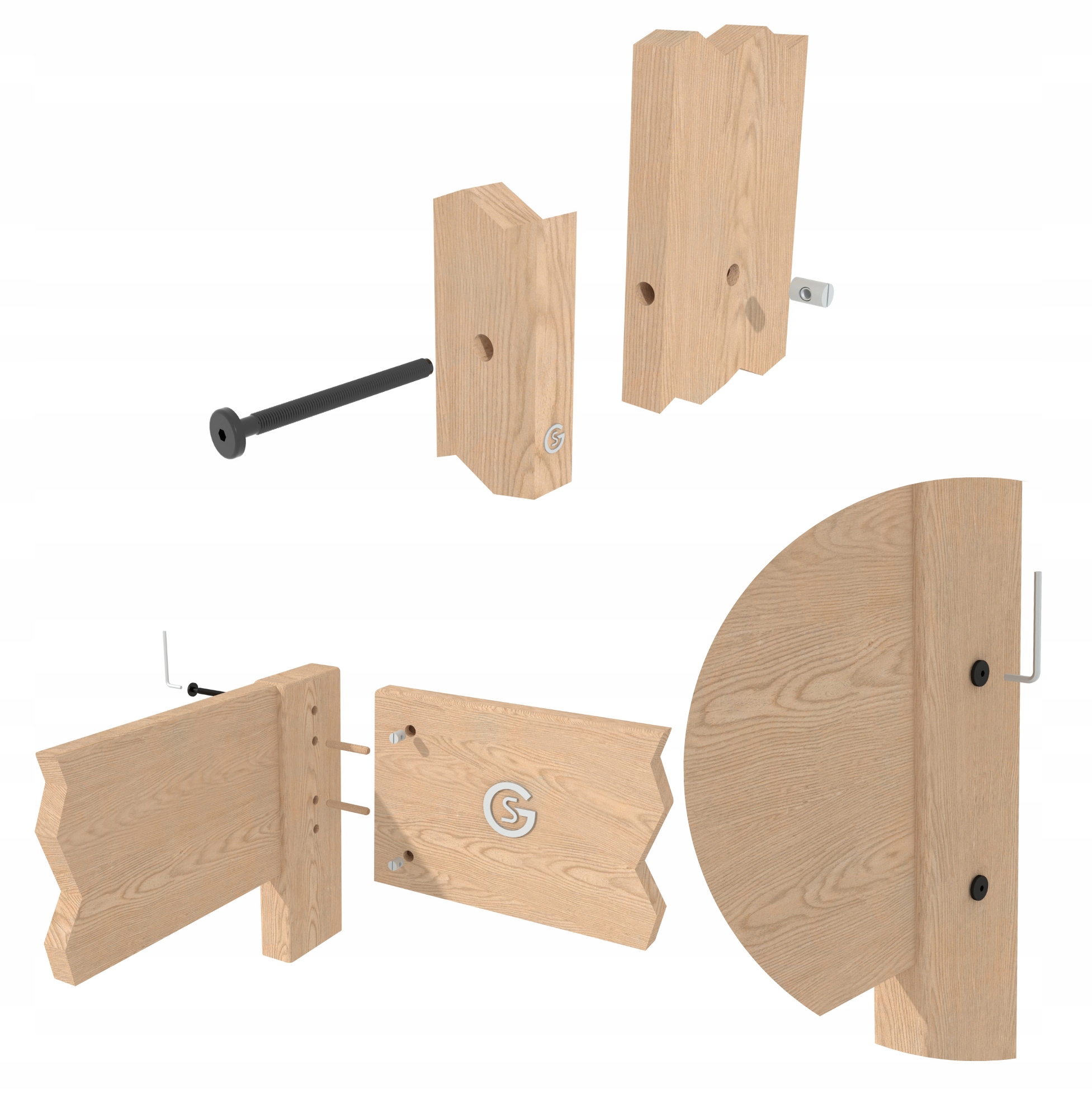 Набор метрических винтов, предназначенных для сборки станины. Это стандартное соединение под углом 90 градусов для сборки конструкции кровати. Комбинация, используемая многими производителями мебели.