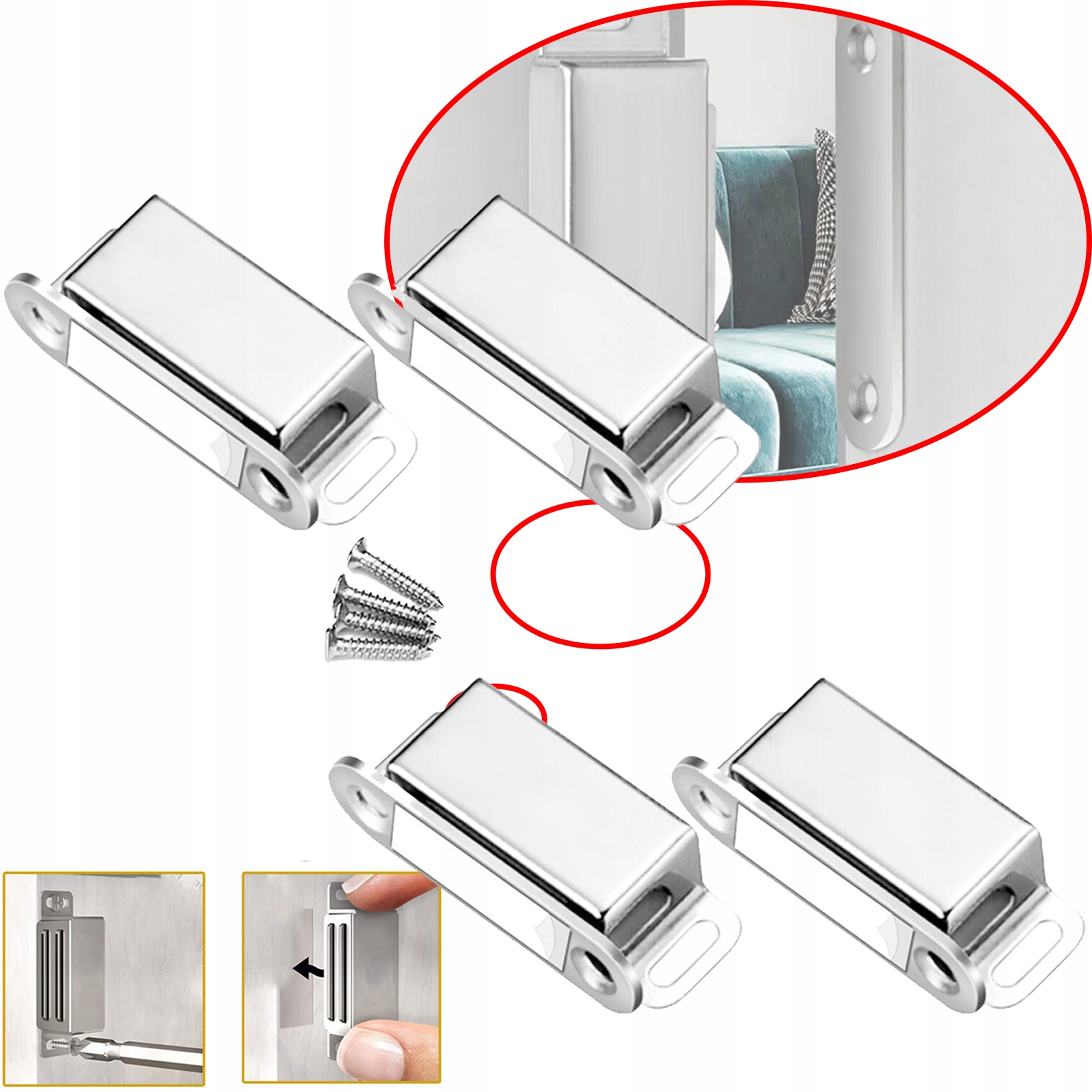 . Это хорошо для использования на двери, где защелка или шарнир бесполезны. Это также идеально подходит для защиты животного от кражи в шкафу для развлечения. Предотвращает коррозию, растрескивание и ржавчину. Сделайте эти металлические магнитные крючки для оконных ставней, чем пластиковые снимки на солнце. Снимите двойную крышку и клейте на стальную пластину. Плотно закройте дверь шкафа и откройте дверь. Стальная пластина приклеена к двери в идеальном положении. Просто прикрутите плитку на месте. Полосы значительно облегчают установку. Эти снимки магнитной мебели оснащены крепкими винтами из нержавеющей стали. Вам не нужно беспокоиться о винте, который легко сломается во время установки