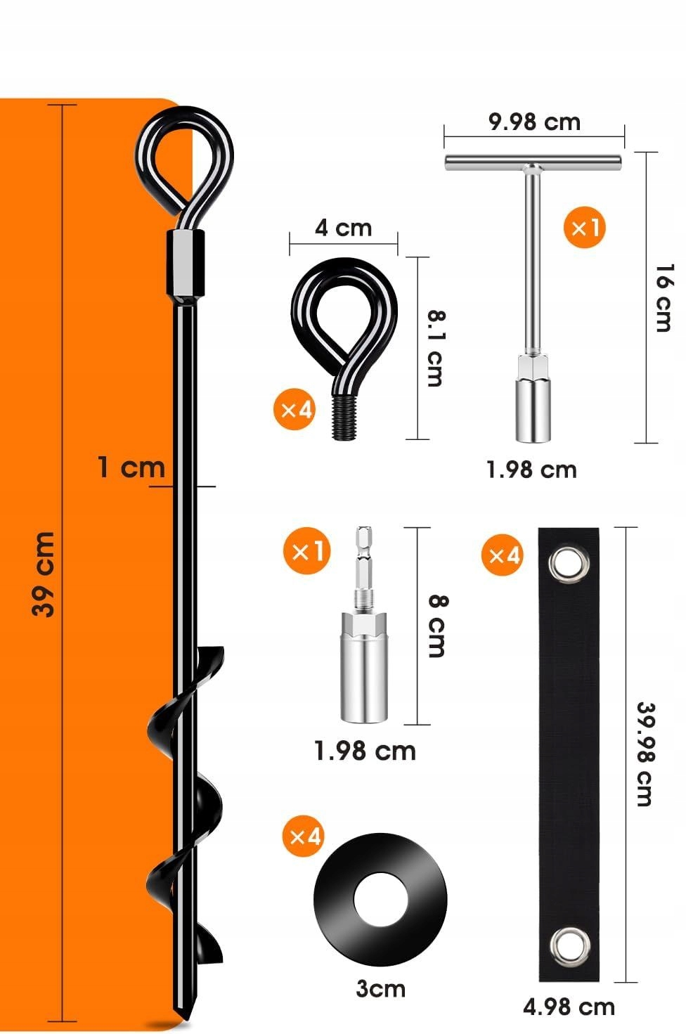 - Широкий Применение: Эти наземные анкеры можно использовать в различных жизненных ситуациях, таких как: подходящий батут, палатки, надувные замки, игровая башня с горкой и качелями, заборы, караван, сарай, ящик, пляж и т. д.
