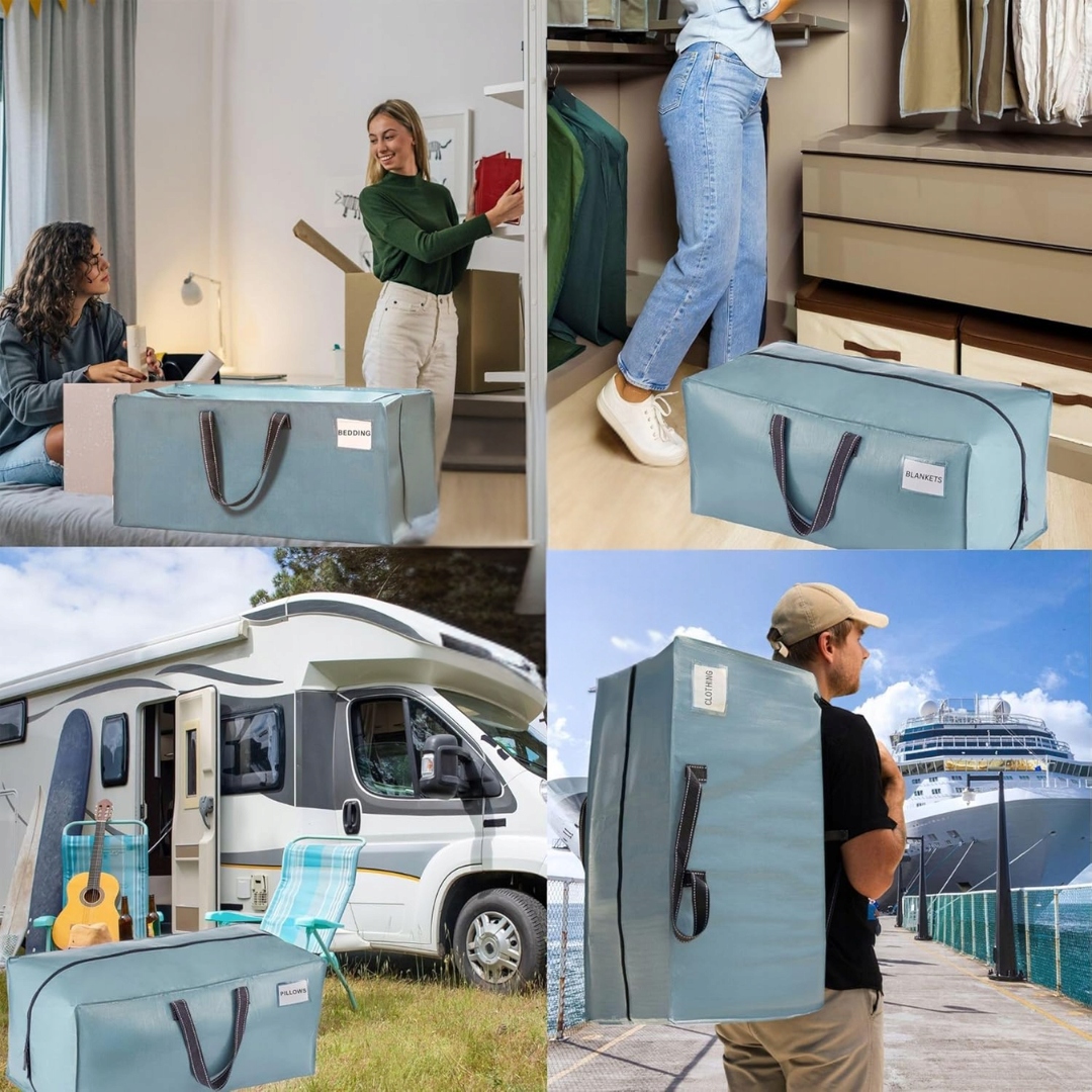 Набор из 4 сумок для переездов размера XL; очень большой размер XL, с прочными рюкзачными ремнями, ручками и молниями. Для хранения одежды, белья, многоразового использования