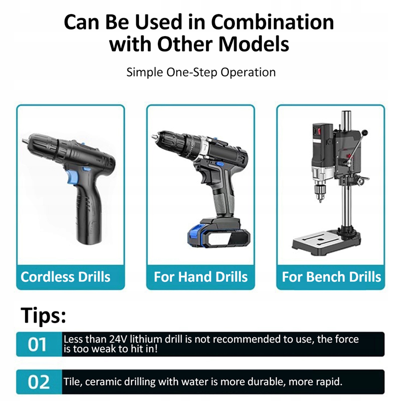 5. Широкий диапазон применения: подходит для стекла, керамики, плитки, зеркал, дерева, фарфора, кирпичных стен и многого другого. Поддерживайте вертикальное положение сверла и используйте непрерывный поток охлаждающей воды, чтобы сверло оставалось холодным.