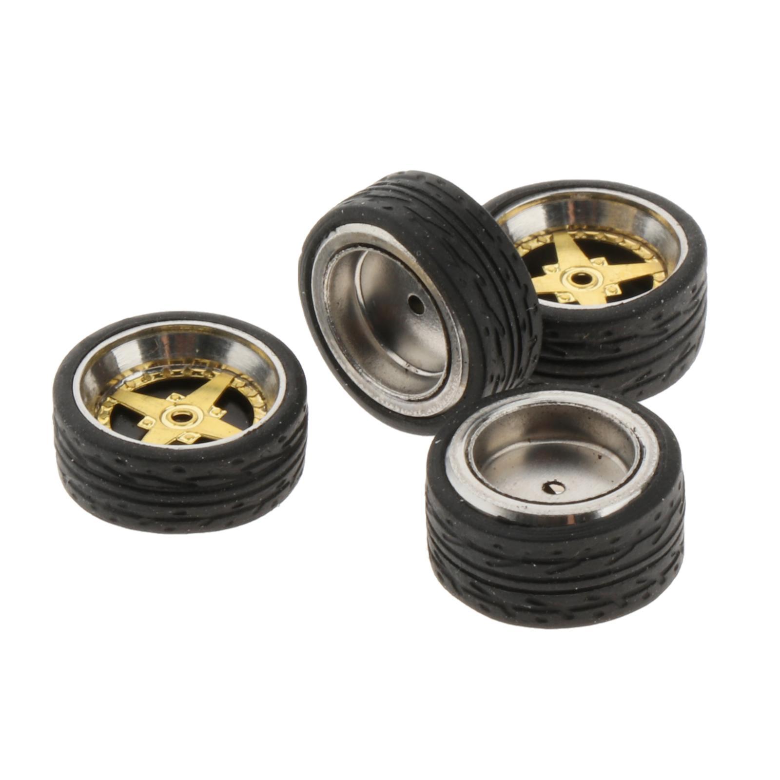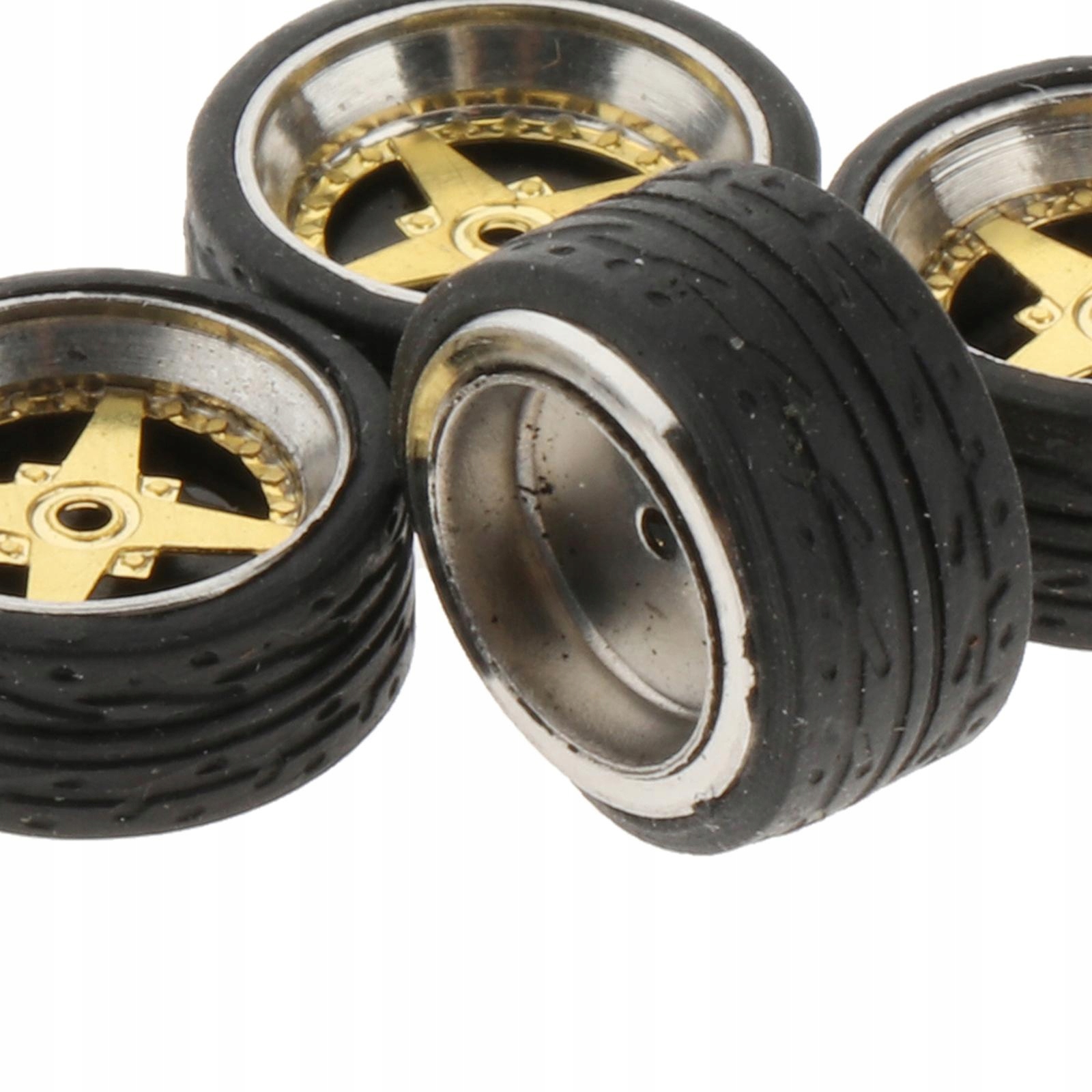 Комплект алюминиевых дисков и шин из 4 частей для модели автомобиля в масштабе 1:64.