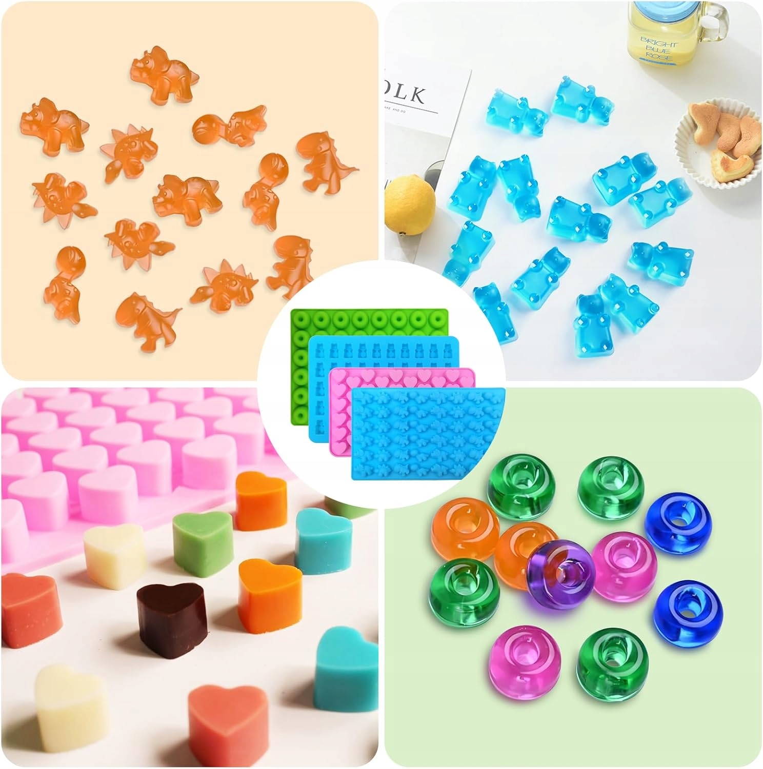 4 силиконовых плесени с 2 шоколадными желе пипетки h1> - 4 куска силиконовых конфет - этот набор включает в себя 50 мини -3D -резиновых плюшевых мишек, 55 мини -формы сердца, 48 мини -пончики и 48 плесени динозавров - всего 201 пустых пространств. Две капли делают наполняющую детскую игру. Объем доставки также включает в себя силиконовый шпатель, связующая проволока и конфеты. Он идеально подходит для производства сладостей, шоколада, кухонного белья, кубиков льда, восковых маркеров, желе или украшения торта.