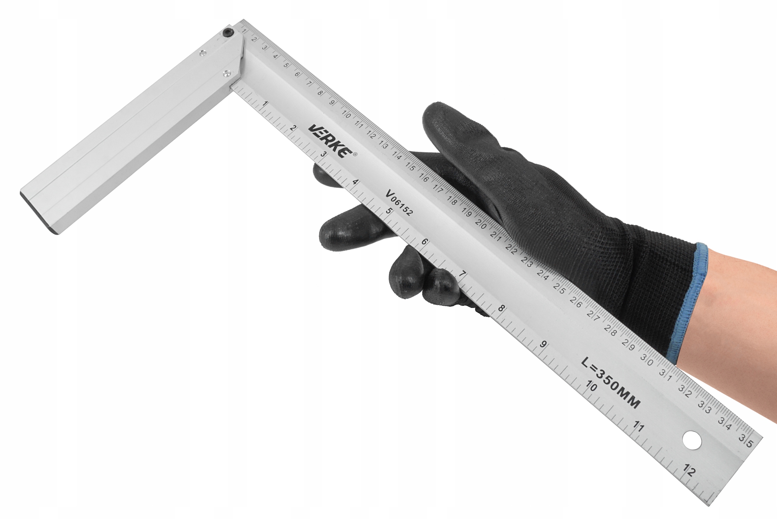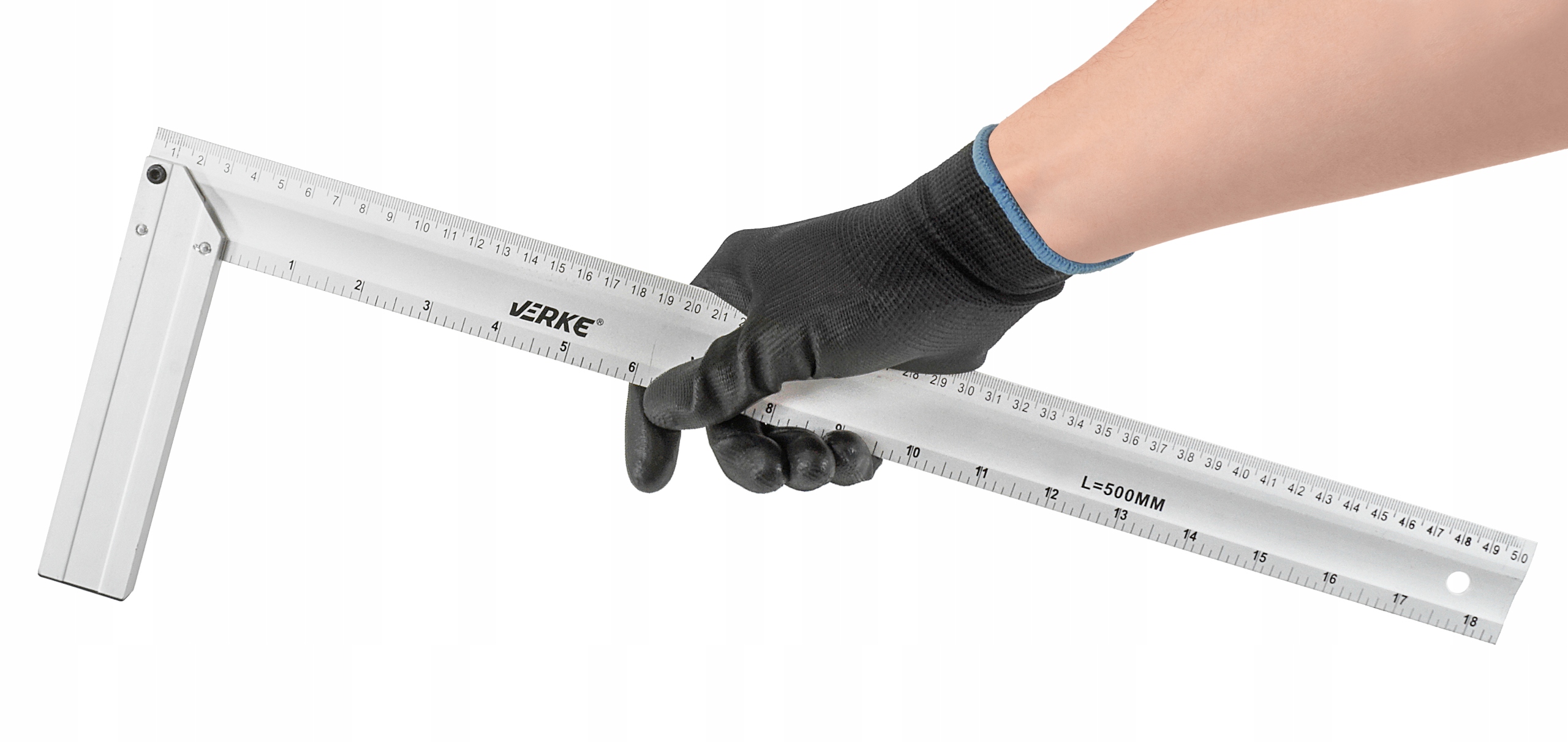Уголки алюминиевые длиной 250 мм, 300 мм, 350 мм и 500 мм. Изготовлен из закаленного алюминия. Шкала постоянно отмечена черным цветом. Имеют миллиметровую и дюймовую шкалу. Они позволяют выполнять точные замеры, определять прямые углы и разметку при столярных, строительных и обмерных работах.