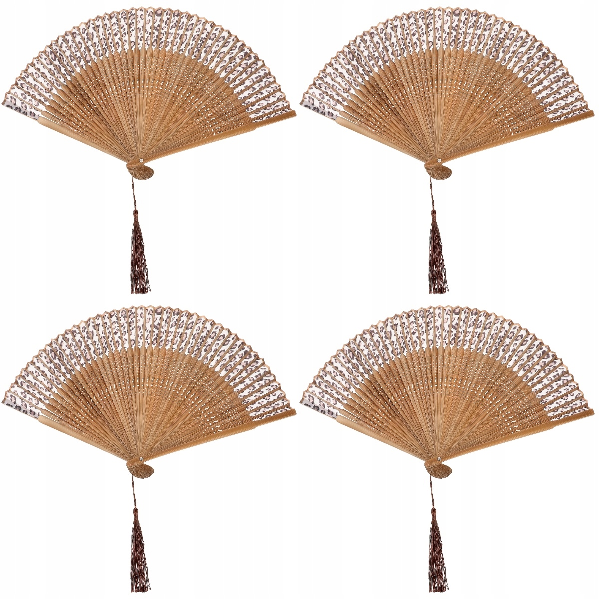 4 SZT. RĘCZNY SKŁADANY WENTYLATOR Z BAMBUSA, CHIŃSKI