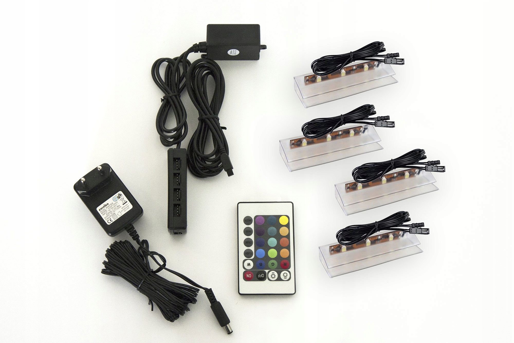 4-точечная светодиодная подсветка Klipex, 16 цветов RGB + пульт дистанционного управления. Идеальное освещение для наших навесных шкафов.