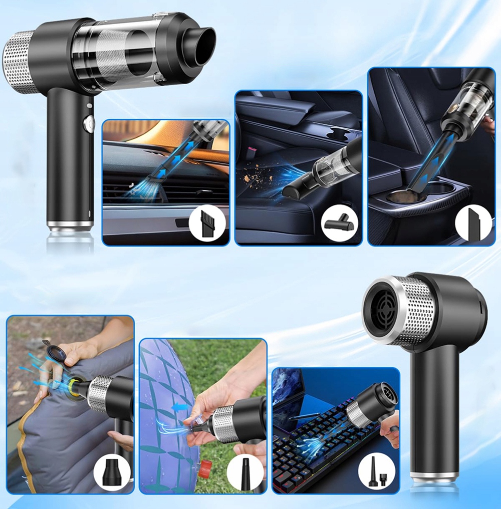 Вакуумный очиститель ручной вакуумы во многих аксессуарах сопла. Вы можете использовать различные аксессуары для форсунки, чтобы удовлетворить ваши различные потребности. Автомобильный пылесос оснащен 4 различным типам кончиков: для удаления пыли, для пылесоса, для аэрации и пылесоса, 4 в 1. Он легко решает различные жизненные проблемы.