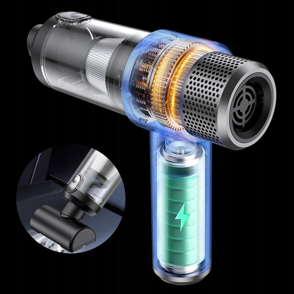 обеспечивает чрезвычайно длинное время очистки. Его можно легко зарядить за помощью автомобильного зарядного устройства, банка питания, ноутбука, батареи и т. Д. Вакуумный очиститель может быть удобно заряжен в автомобиле или дома через любой USB -порт.