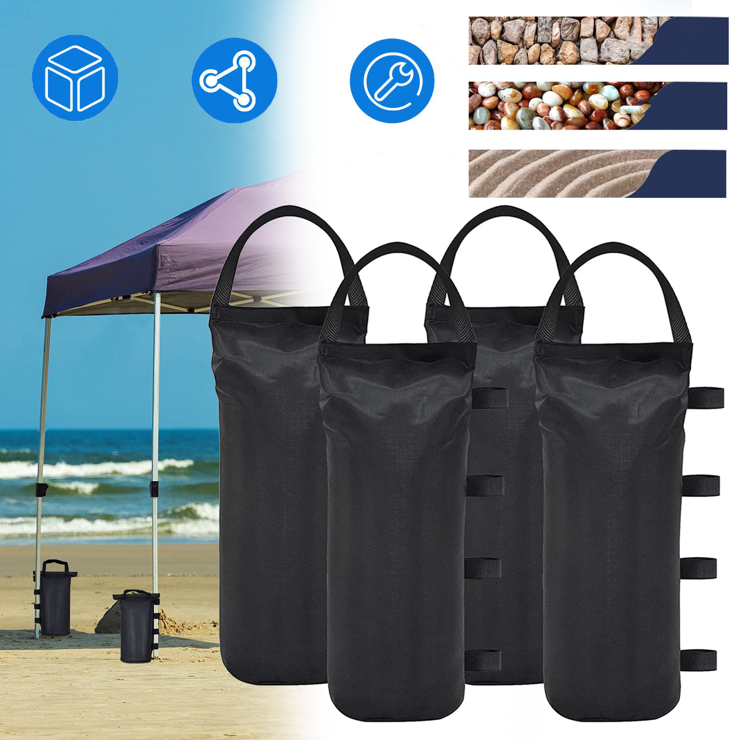 ✨✨【Прочная конструкция】 Каждый мешок для балласта вмещает максимум 30 фунтов песка. , камни, грязь и другое содержимое. Подходит для любого всплывающего навеса и укрытий для кемпинга, спортивных зонтов, батутов.