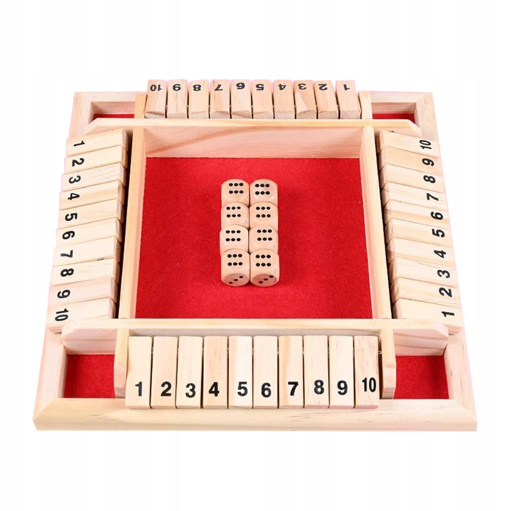 4 Way Player Shut The Box Dice Game Wooden Board Game for Learning Numbers