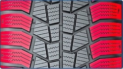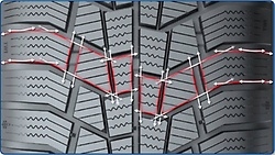 Направленный V-образный рисунок протектора с множеством длинных кромок оптимизирует создание продольных и поперечных сил. Это обеспечивает хорошее поведение и впечатляющую управляемость в зимних условиях.