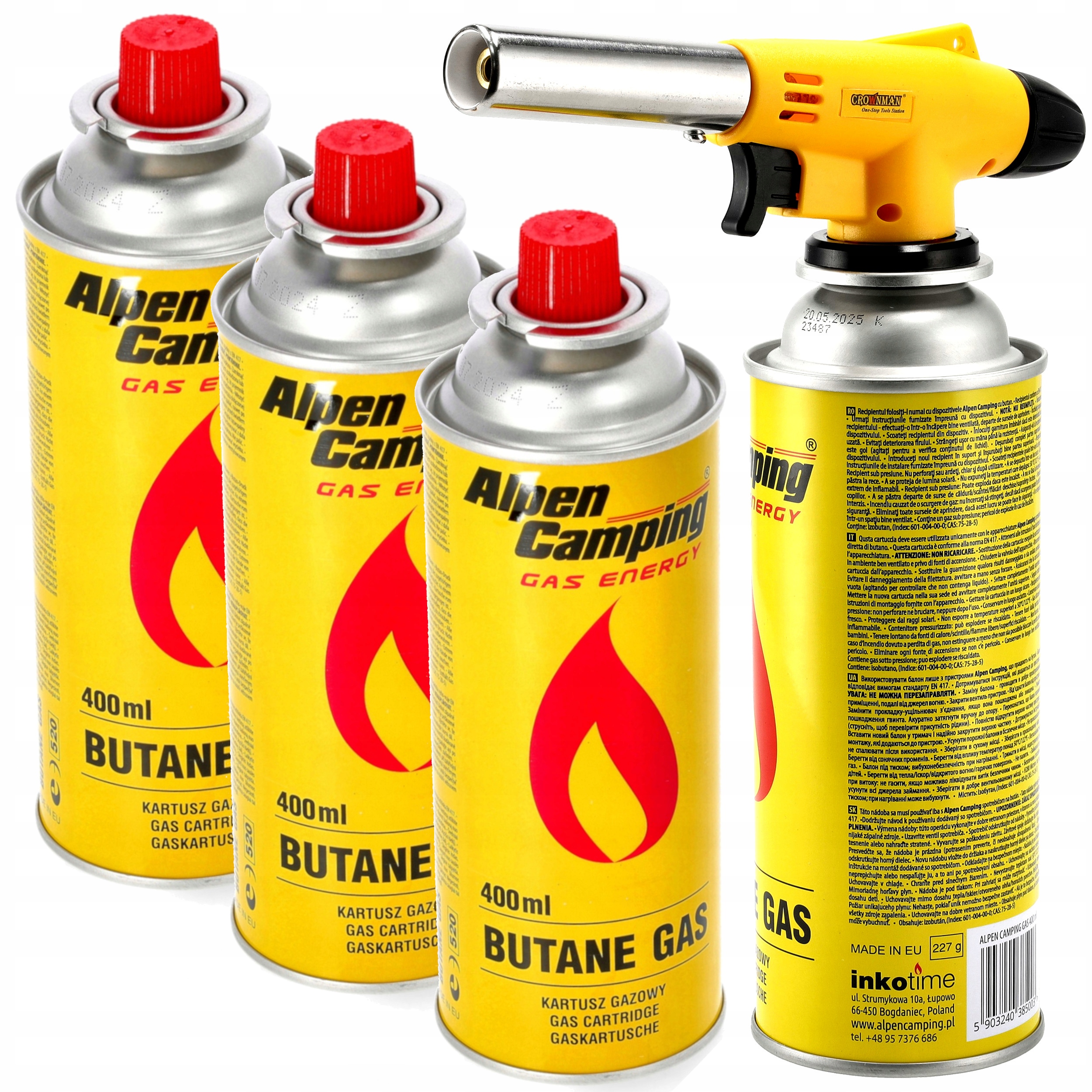 Установка: 4 x газовый Cartouche 227g Alpen Camping + Hand Gust Has горелка до 1300 ° C