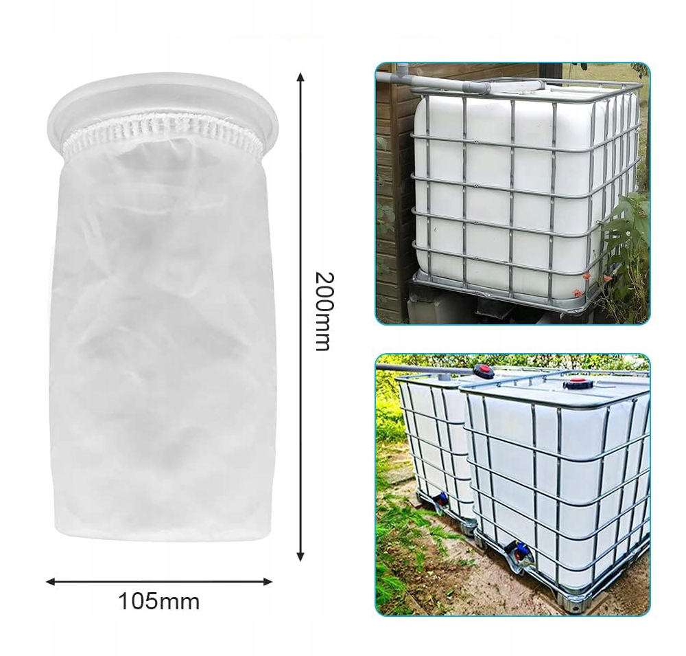 ✔ Размер: Внешний диаметр каждого фильтра прикрепления составляет около 105 мм, а длина составляет около 200 мм. Нейлоновый заменяемый фильтр с фильтром дождевой воды подходит для большинства контейнеров, доступных на рынке.