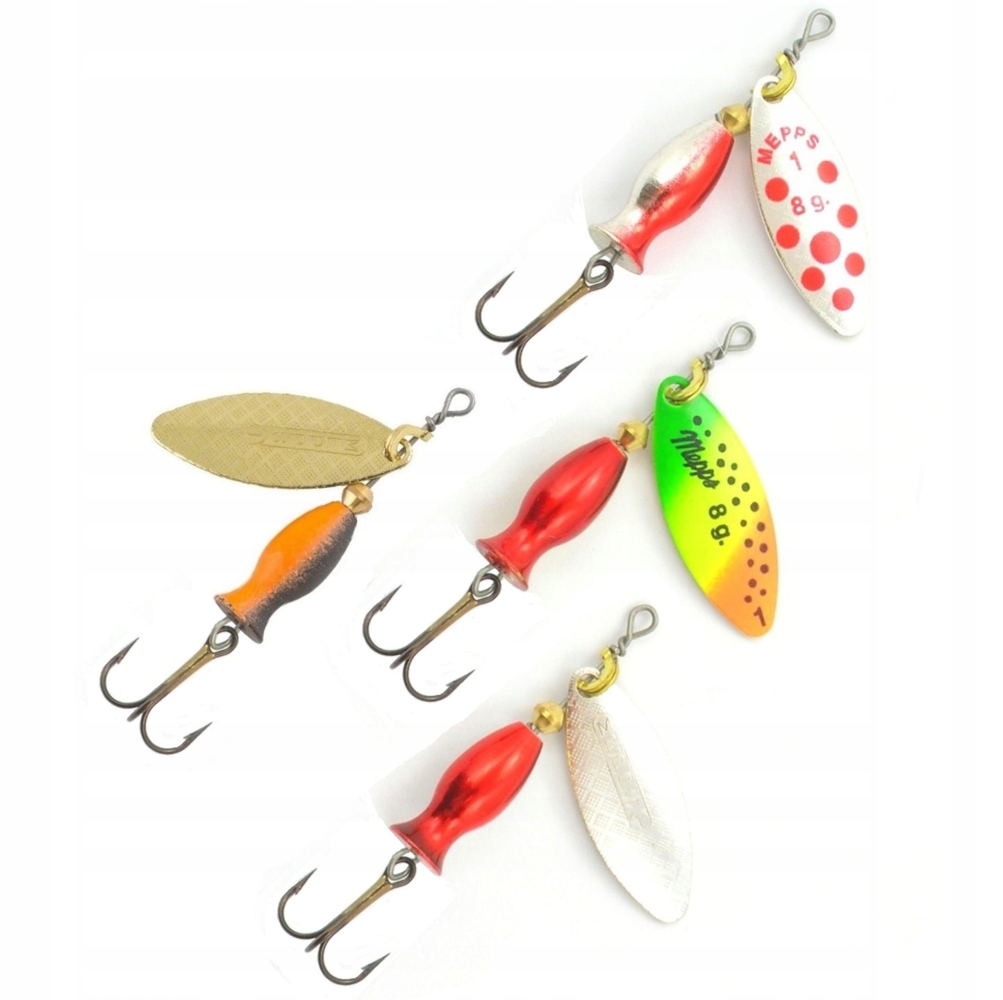 4 x MEPPS AGLIA LONG HEAVY № 1 / 8 г СЕРЕБРО - ЗОЛОТО - СЕРЕБРЯНЫЙ / R.D. - ТИГР