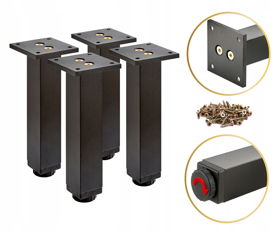 4 X STRONG LEG МЕБЕЛЬНАЯ НОЖКА РЕГУЛИРУЕМАЯ НОЖКА ДЛЯ МЕБЕЛИ 20 СМ ЧЕРНЫЕ ВИНТЫ