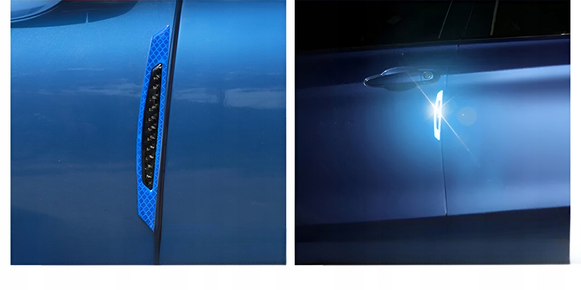 набор из 4 защитных отражающих автомобильных наклеек для установки в выбранных местах.