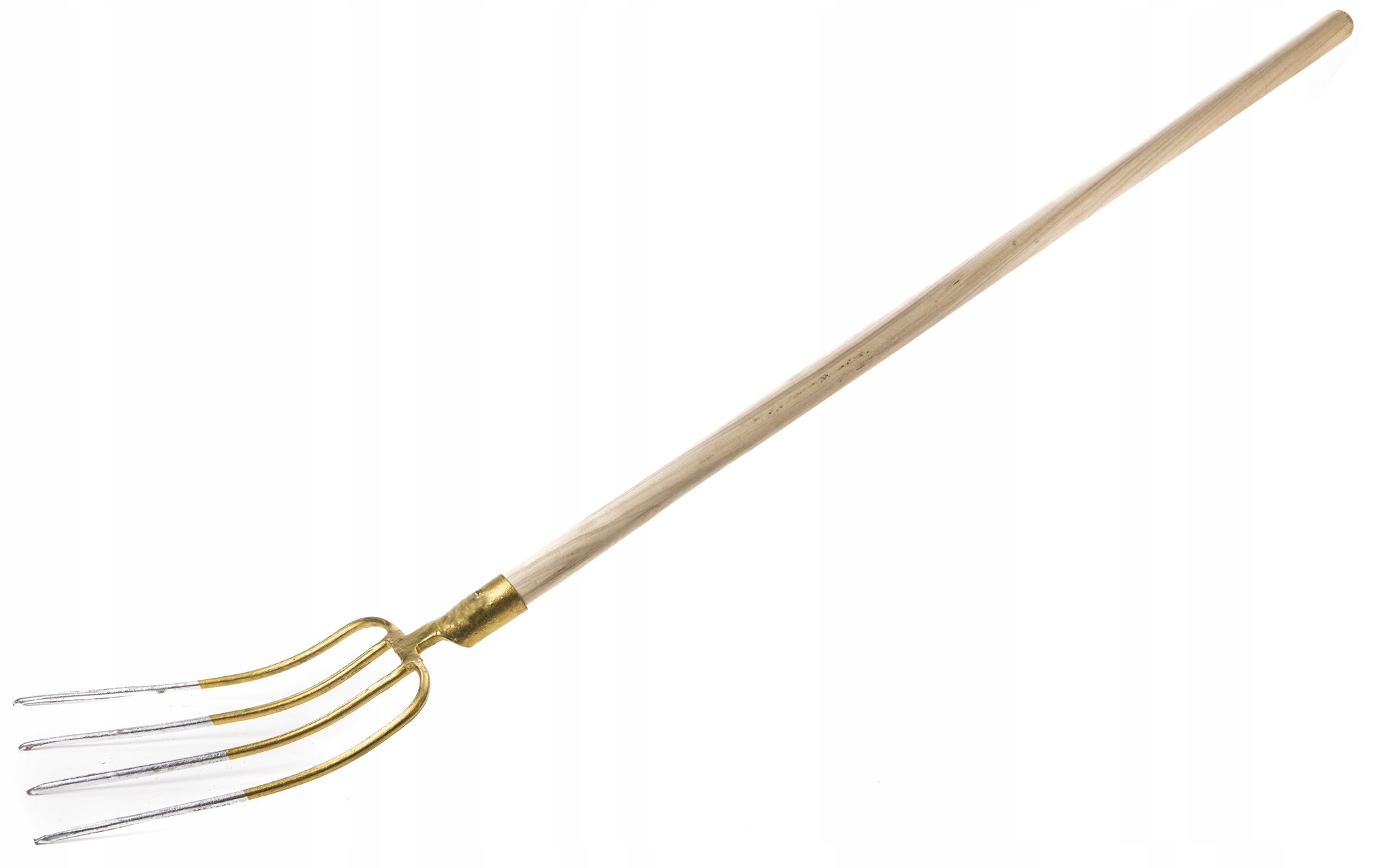 ВИЛКА ФЕРМЕРСКАЯ, 4 ЗУБЦА, ЗОЛОТО И СЕРЕБРЯНО, С ДЕРЕВЯННЫМ ВАЛОМ