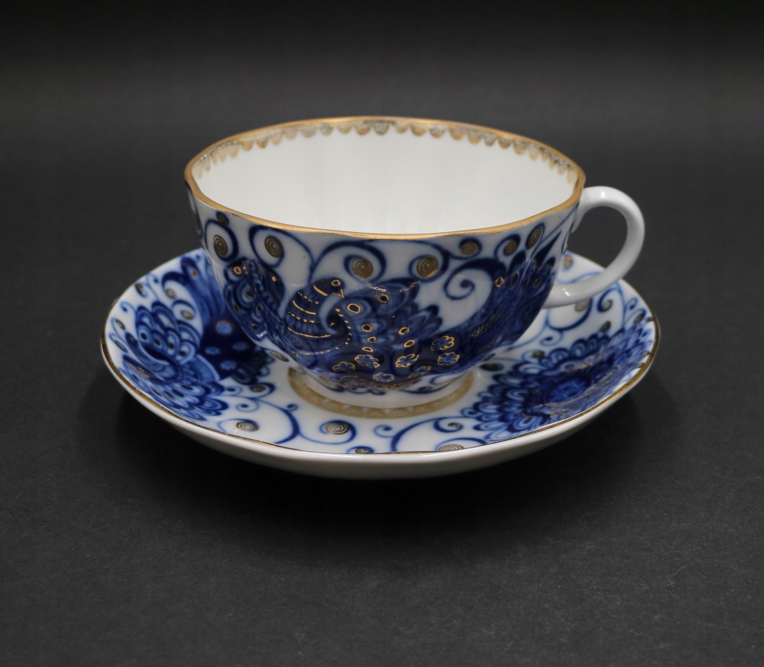 4. Чашка чайная 200 мл ЛОМОНОСОВ "Райская птица" - кобальт