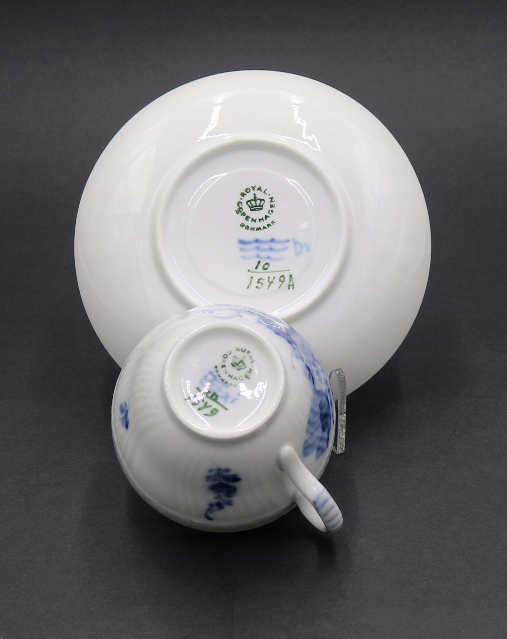 Три волны до сих пор нарисованы на каждом фарфоровом изделии, изготовленном на Королевской копенгагенской фабрике. Другая часть подписи — королевская корона, символизирующая происхождение компании. Первоначально корона расписывалась вручную, но с 1870-х годов этот знак создавался с помощью подглазурного штампа. Корону дополнительно украшает «Крест Дагмары» — средневековое распятие с драгоценными камнями, обнаруженное в 1690 году.