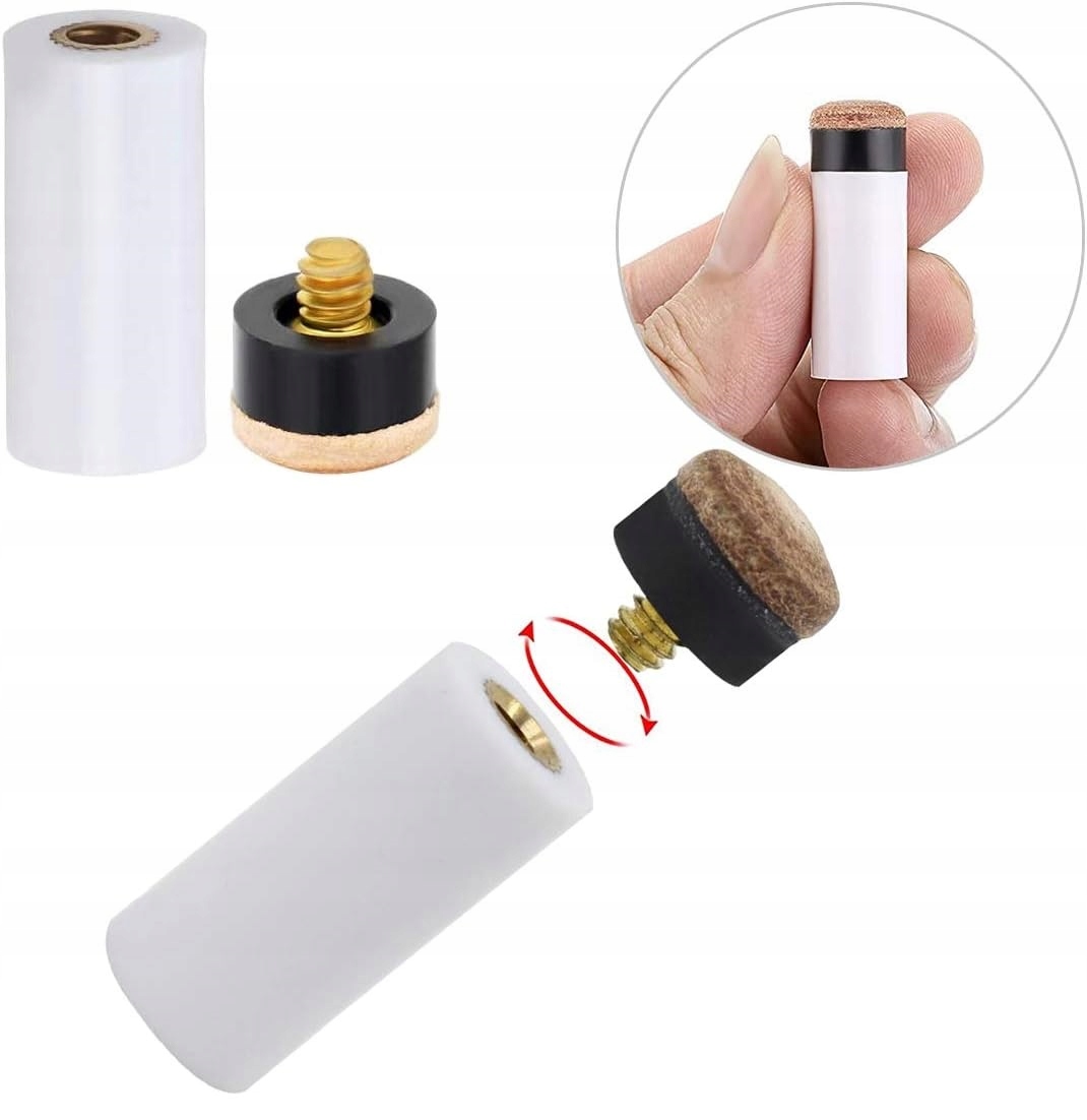 Простая замена старой насадки на новую — слегка смочите верхнюю часть насадки, а затем наденьте ее на конец кия.
